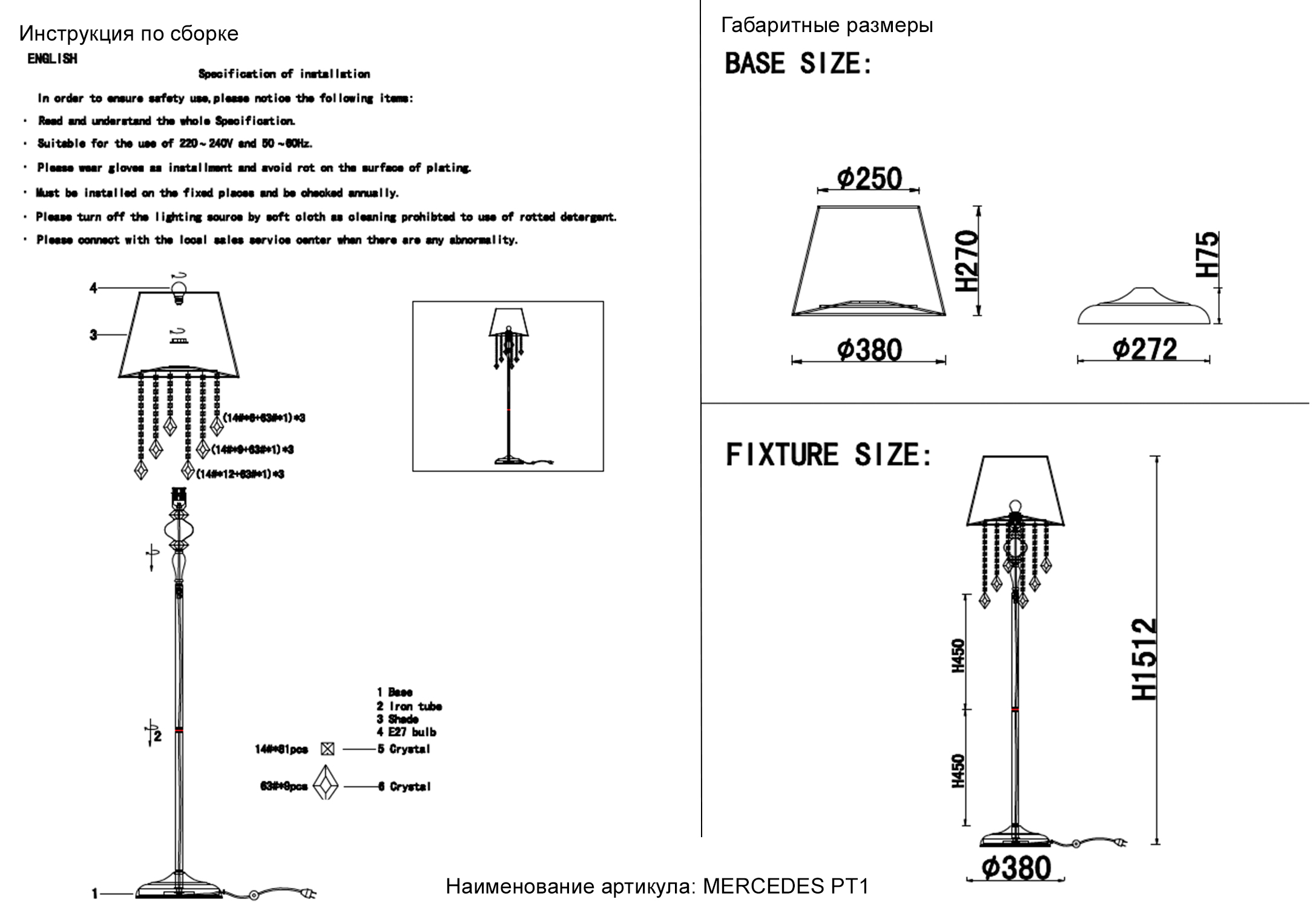 Торшер Crystal Lux MERCEDES PT1 GOLD/COLOR
