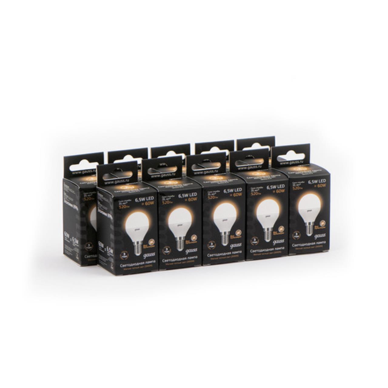 105101107 Лампа Gauss LED Шар E14 6.5W 520lm 3000K 1/10/50