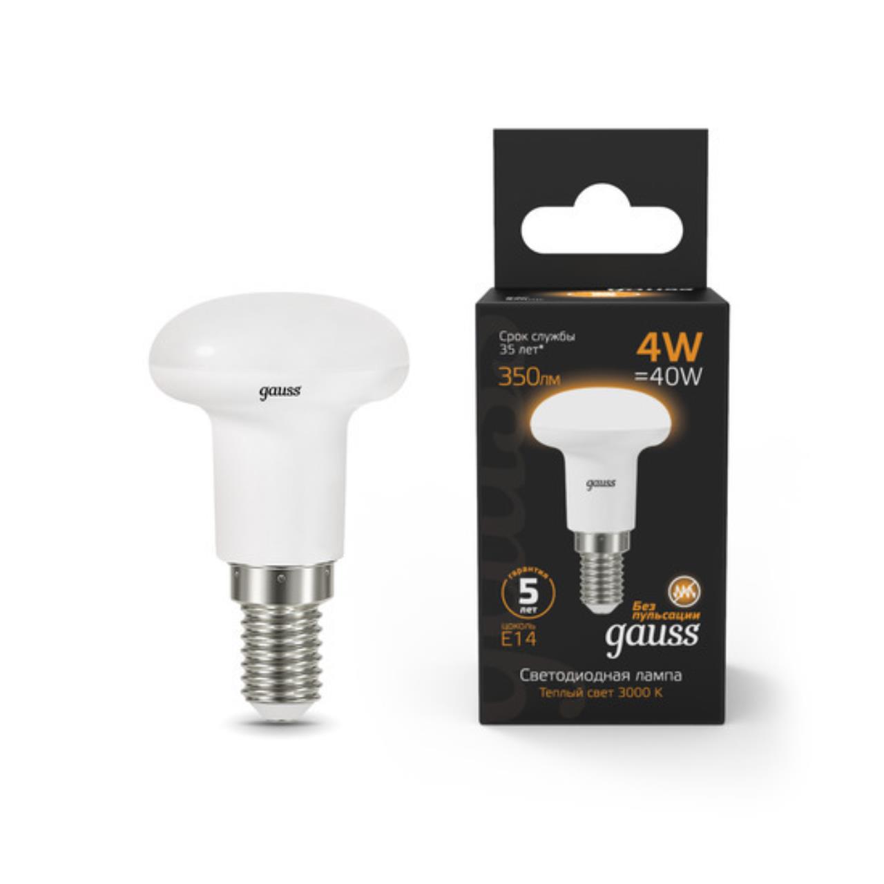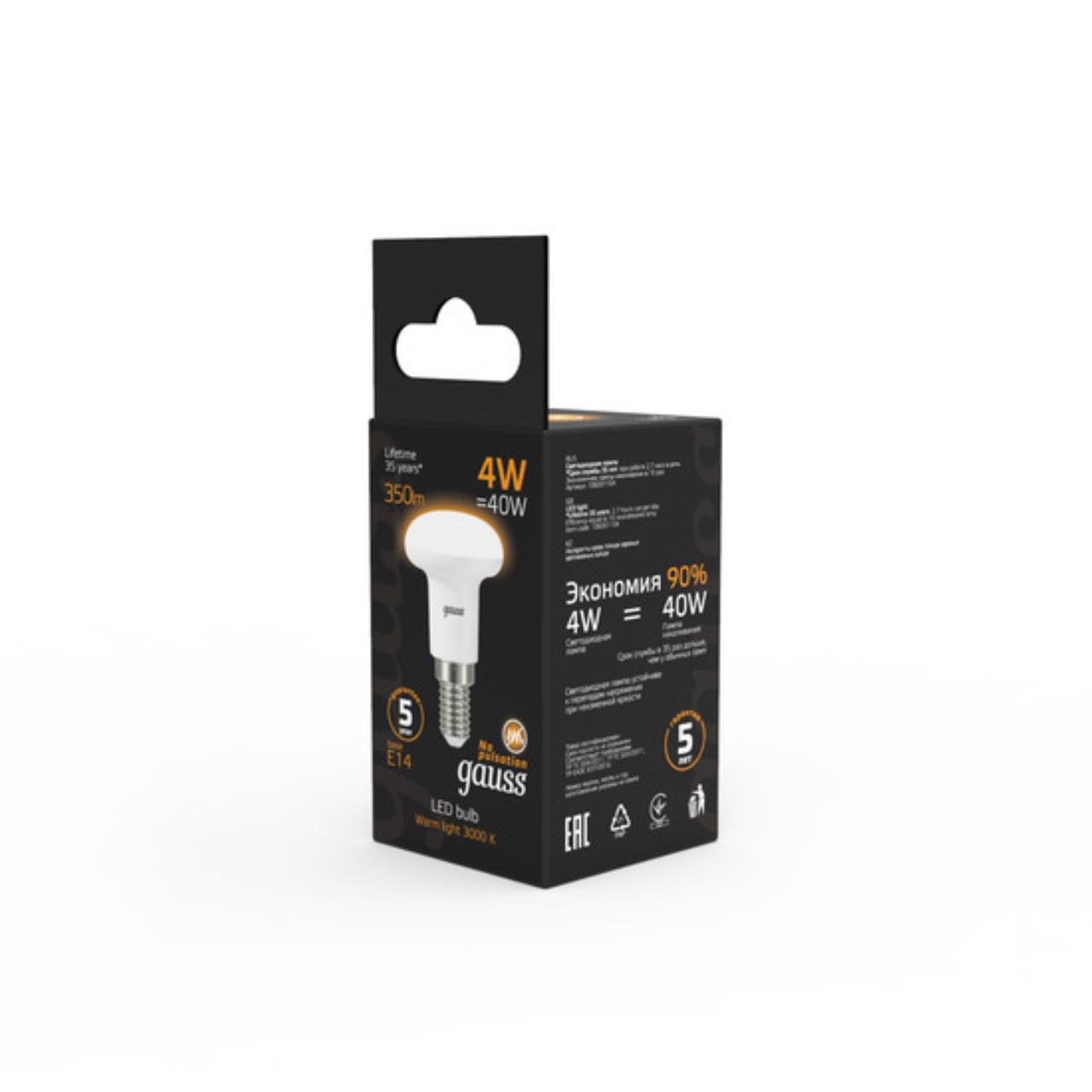 106001104 Лампа Gauss LED R39 E14 4W 350lm 2700K 1/10/50