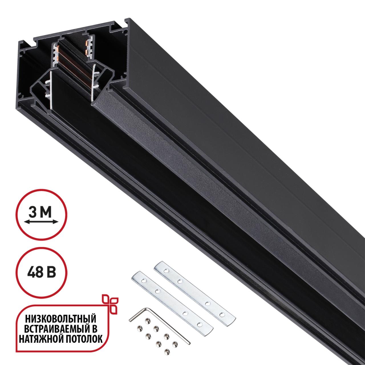135244 SHINO NT24 123 черный Низковольтный шинопровод для монтажа в натяжной потолок 3м IP20 48V FLUM
