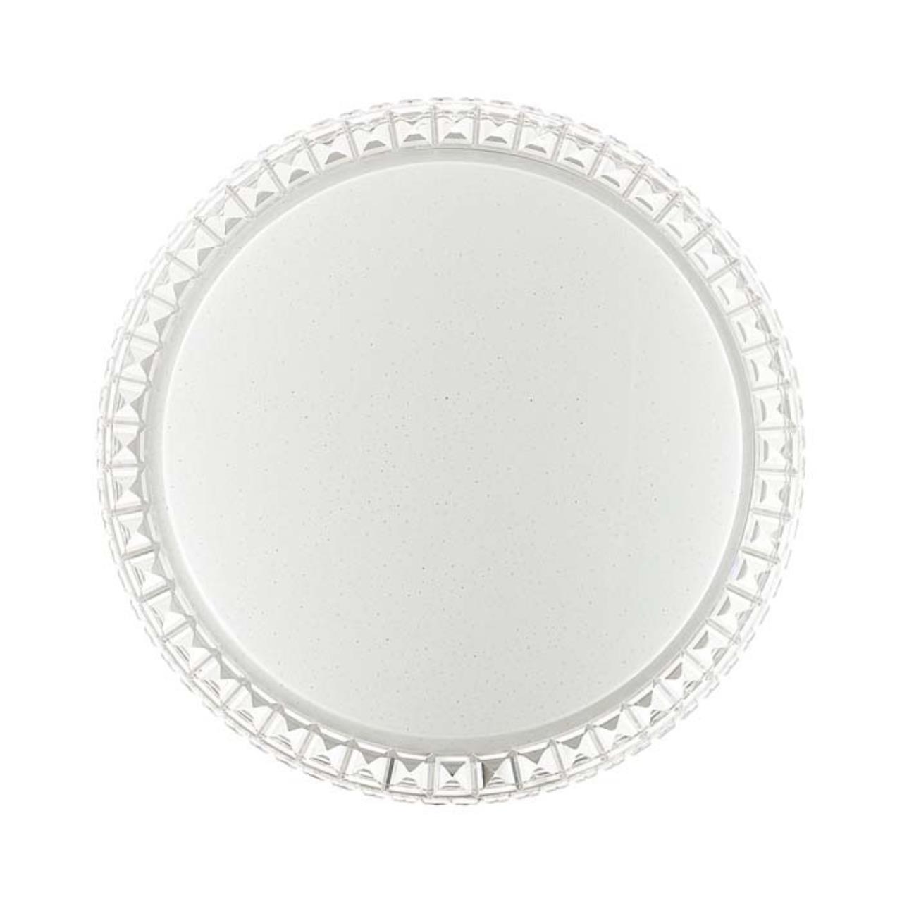 Светильник 2036/DLN линии BRISA состоит из металлического основания (базы) и пластикового рассеивателя. Материал рассеивателя — высококачественный акрил белого цвета с глянцевой поверхностью, обеспечивающий светильнику равномерное рассеивание и хорошее светопропускание. Форма плафона: круглая, декорирована рисунком в виде прозрачных точек и рельефным ободом, которые придают включенному светильнику красивый эффект «звездного мерцания» и переливания. Степень защиты IP43 позволяет использовать светильник в определенных зонах влажных помещений. В комплект входит LED-модуль с линзами мощностью 48 Вт, соответствующей лампе накаливания 515 Вт, а также переключатель температуры цвета (ССT) на драйвере, с помощью которого осуществляется изменение цветовой температуры 3000/4000/6000 К и переход светильника в режим теплого/белого/холодного света. Для установки необходимого режима рекомендуется использовать удлиненный тонкий предмет типа небольшой отвертки.