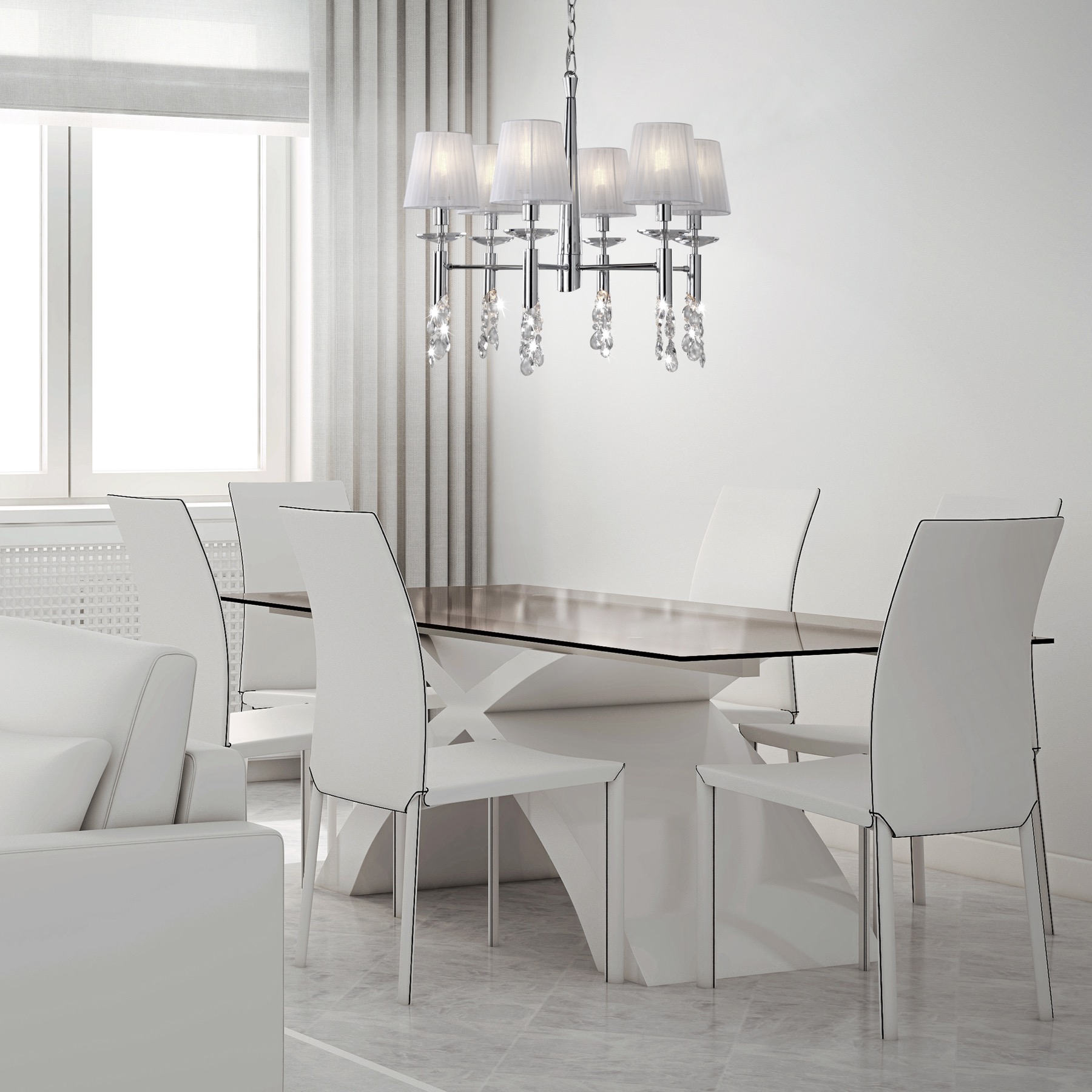 TIFFANY — это безусловно великолепная и редкая по своей необычности коллекция. Роскошные светильники пронизывают полупрозрачные блики нитей абажура, наряду с искрами хрустальных камней, даря индивидуальность вашему освещению. Она сочетает в себе патроны для ламп E27 или E14 на верхнем уровне, которые сопровождаются сдержанными патронами ламп G9, размещенными на нижнем уровне. Это ловкое дизайнерское решение усиливает блеск хрустальной резьбы TIFFANY, а также освещает нижние поверхности. Полная коллекция доступна в полированном хроме с белыми абажурами и в античной латуни с мягким кремовым оттенком абажуров. С возможностью широкого выбора отделки Mantra создается гибкость для подбора идеального светового решения под нужды и стиль вашего интерьера. Предметы коллекции TIFFANY идеально дополнят интерьер, выполненный в классическом стиле. Из-за своей фигурной резьбы на стеклянных абажурах предметы коллекции будут выигрышно выделяться в широком пространстве с большими окнами, отражая солнечные лучи.