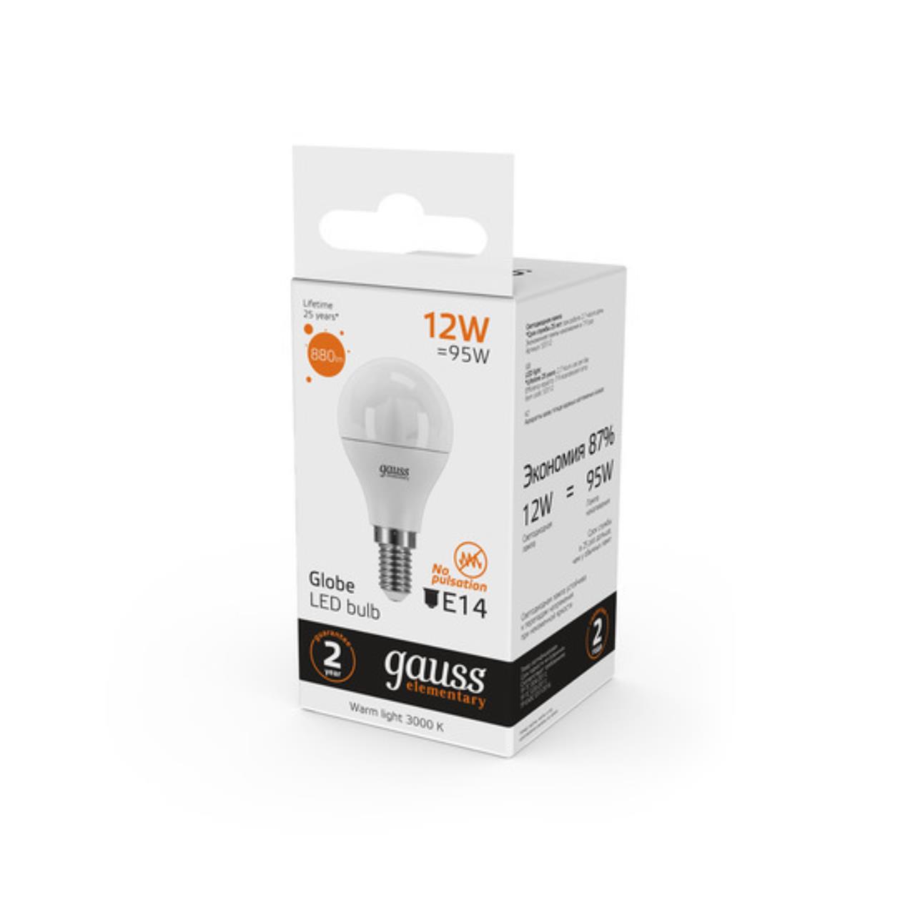 53112 Лампа Gauss LED Elementary Шар 12W 880lm E14 3000K 1/10/100