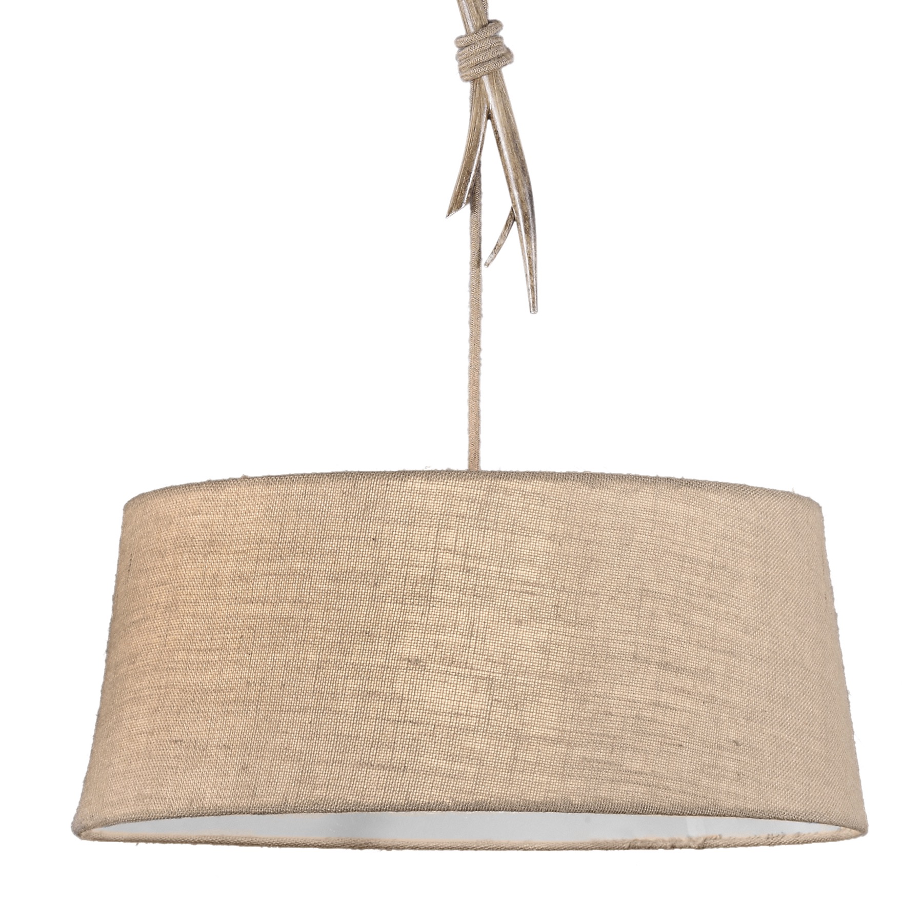 завязываются узлом вокруг ветвей и ведут к бежевым льняным оттенкам абажуров,