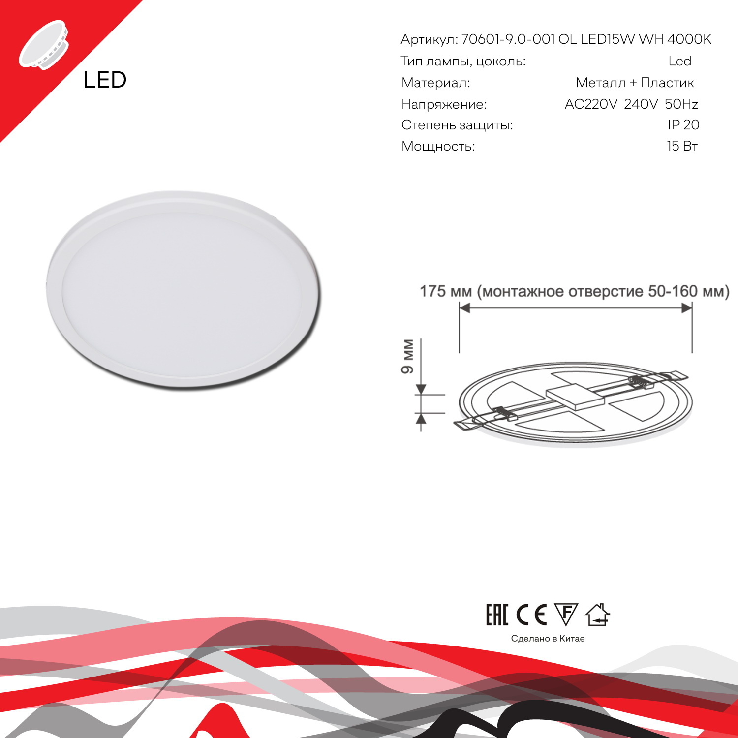 70601-9.0-001OL LED15W WH 4000K панель светодиодная