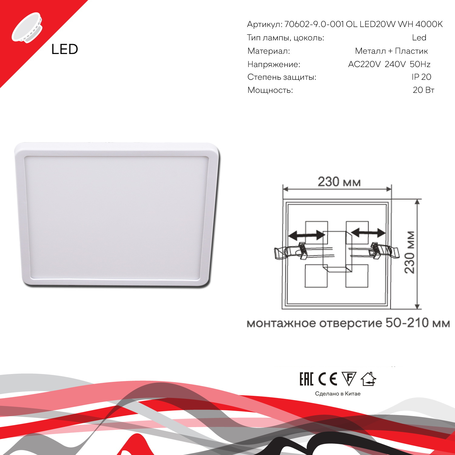 70602-9.0-001OL LED20W WH 4000K панель светодиодная
