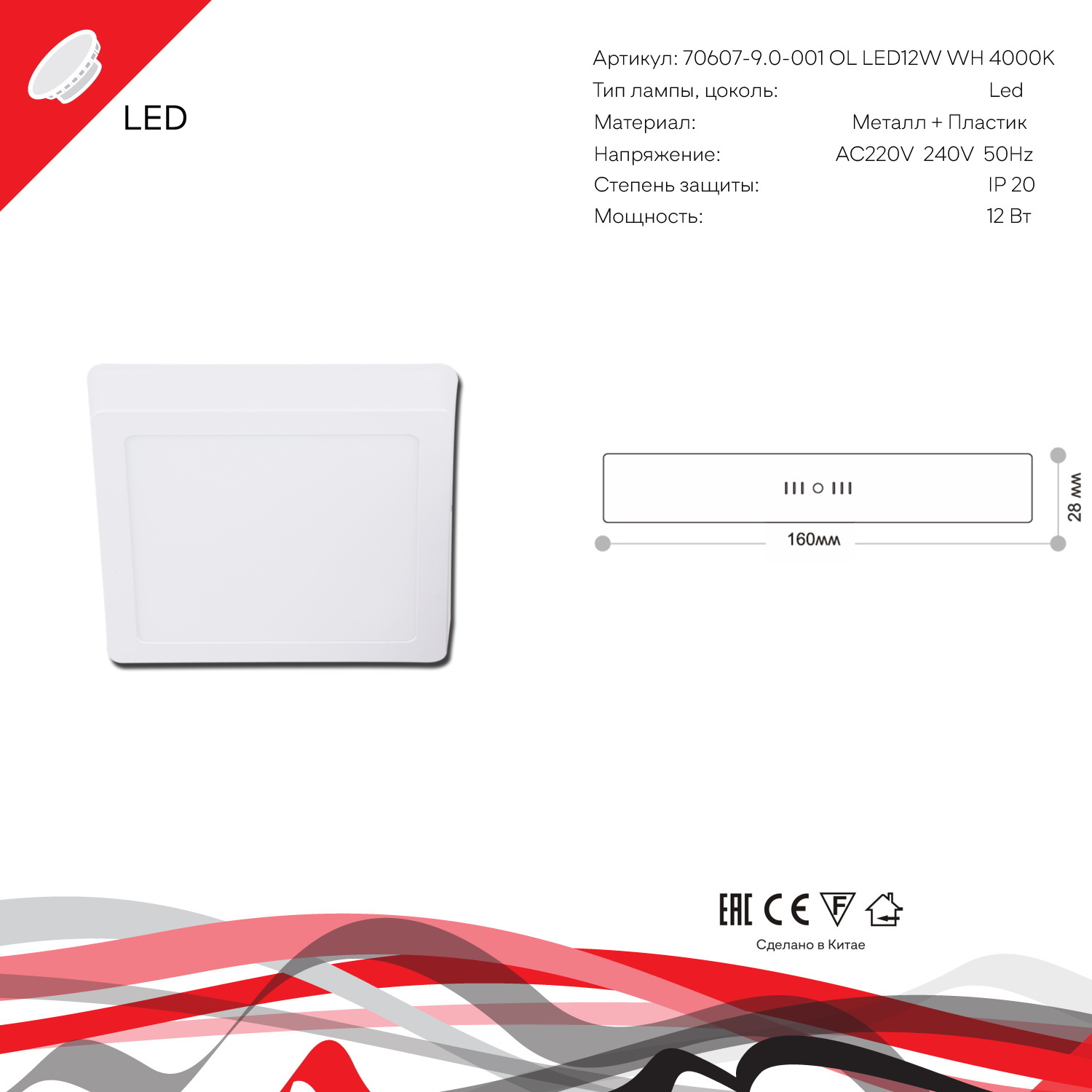 70607-9.5-001OL LED12W WH 4000K панель светодиодная