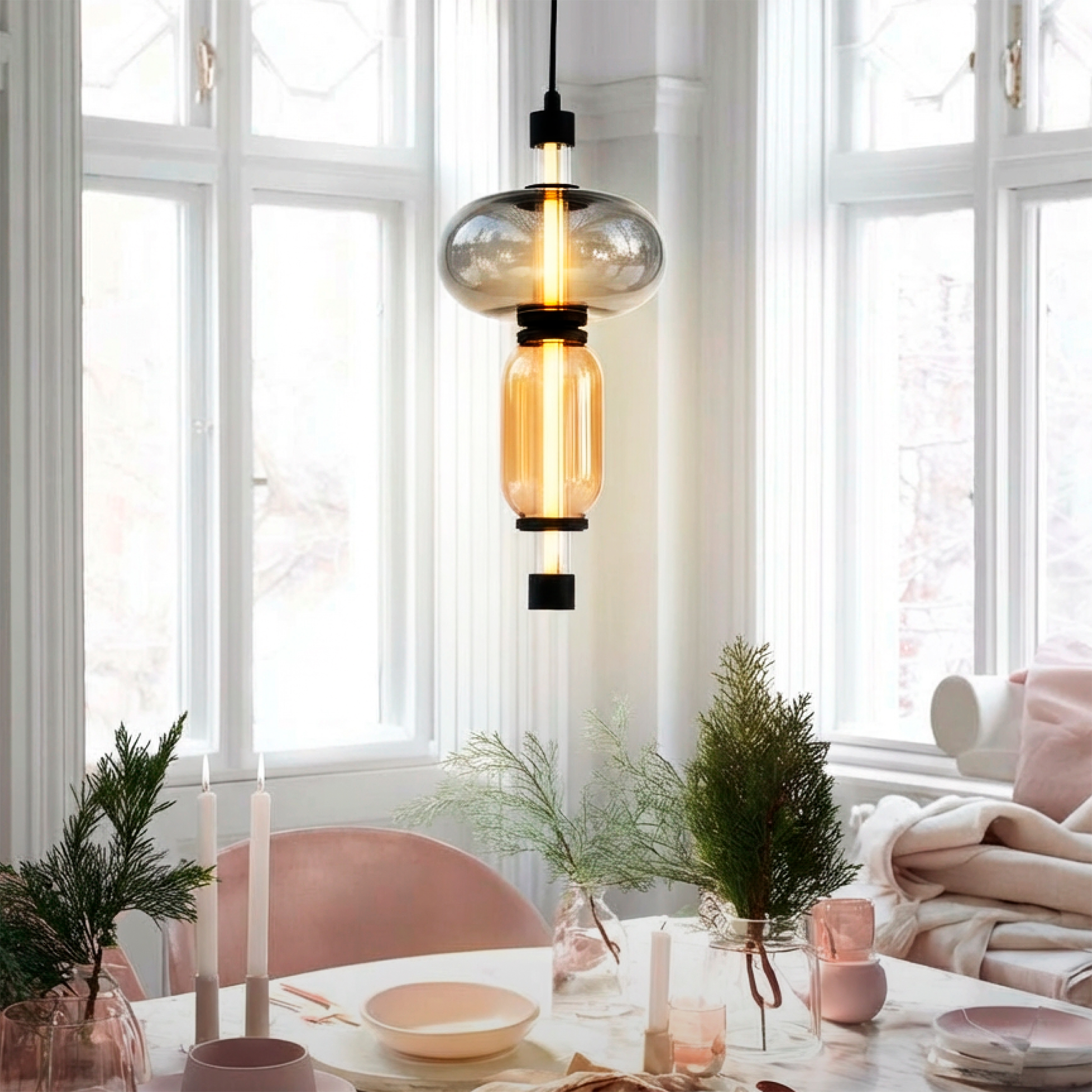 737527 Подвес EMISFERO 8W LED 250LM G ЧЕРНЫЙ/ПРОЗРАЧНЫЙ+ЯНТАРЬ 3000K