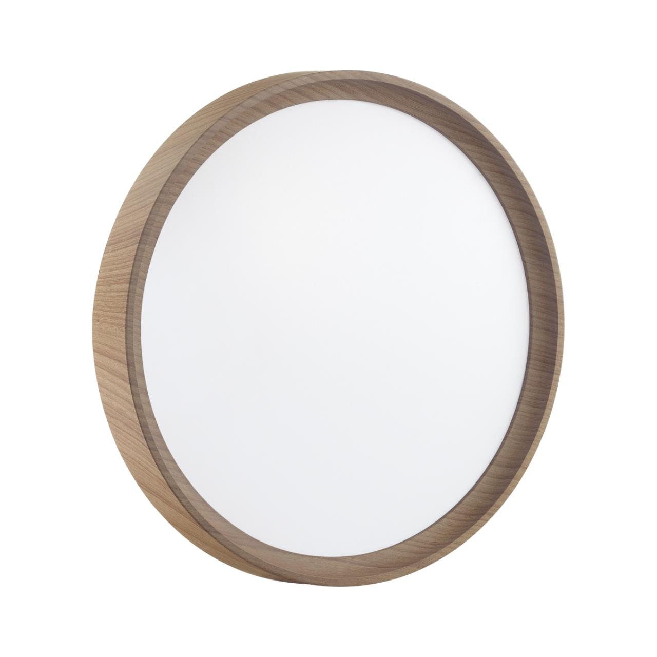 Светильник 7603/ELN линии WOODI состоит из металлического основания (базы) и пластикового рассеивателя. Материал рассеивателя ― высококачественный пластик марки PMMA 2.0 белого цвета с матовой поверхностью без текстуры. Пластик обеспечивает светильнику равномерное рассеивание и хорошее светопропускание. Форма плафона: круглая, декорирована ободом светло-коричневого цвета под дерево. Степень защиты IP43 позволяет использовать светильник в определенных зонах влажных помещений. В комплект входит LED-модуль с линзами мощностью 76 Вт, соответствующей лампе накаливания 740 Вт, а также переключатель температуры цвета (ССT) на драйвере, с помощью которого осуществляется изменение цветовой температуры 3000/4000/6000 К и переход светильника в режим теплого/белого/холодного света. Для установки необходимого режима рекомендуется использовать удлиненный тонкий предмет типа небольшой отвертки.