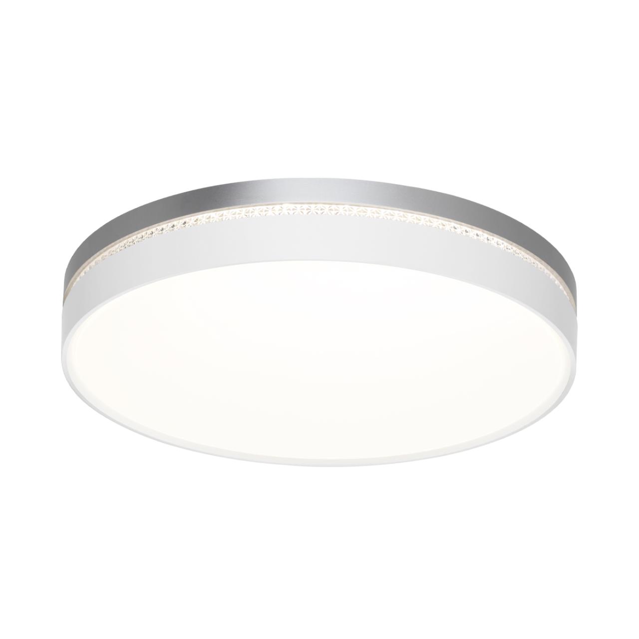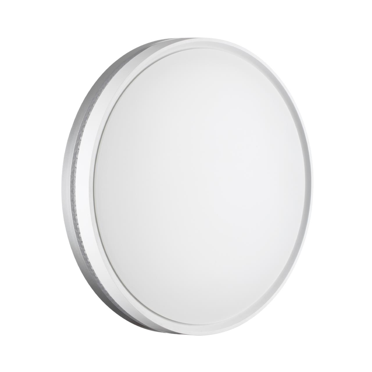 Светильник 7670/ELN линии NOHAVA GREY состоит из металлического основания (базы) и пластикового рассеивателя. Материал рассеивателя ― высококачественный пластик марки PMMA 2.0 белого цвета с матовой поверхностью. Пластик обеспечивает светильнику равномерное рассеивание и хорошее светопропускание. Форма плафона: круглая, декорирована ободом из пластика светло-серого цвета у основания светильники и белого цвета у внешнего края. Обод украшен прозрачной декоративной вставкой под хрусталь. Степень защиты IP43 позволяет использовать светильник в определенных зонах влажных помещений. В комплект входит LED-модуль с линзами мощностью 76 Вт, соответствующей лампе накаливания 740 Вт, а также переключатель температуры цвета (ССT) на драйвере, с помощью которого осуществляется изменение цветовой температуры 3000/4000/6000 К и переход светильника в режим теплого/белого/холодного света. Для установки необходимого режима рекомендуется использовать удлиненный тонкий предмет типа небольшой отвертки.