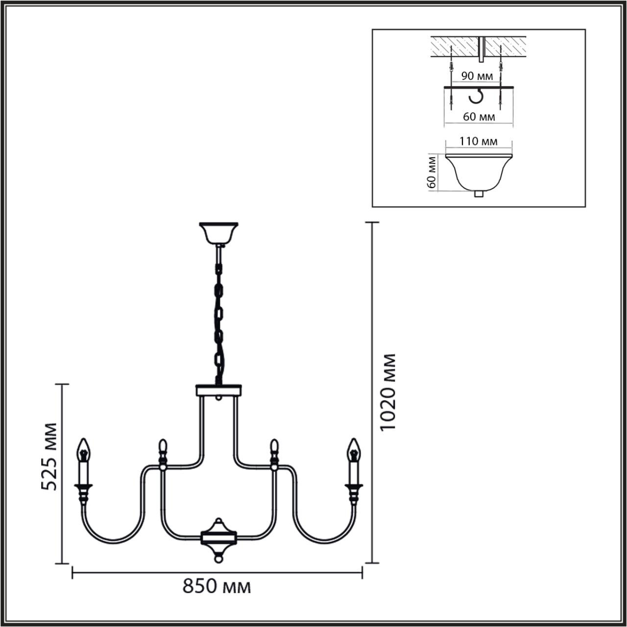 Светильник Высота без цепи, мм