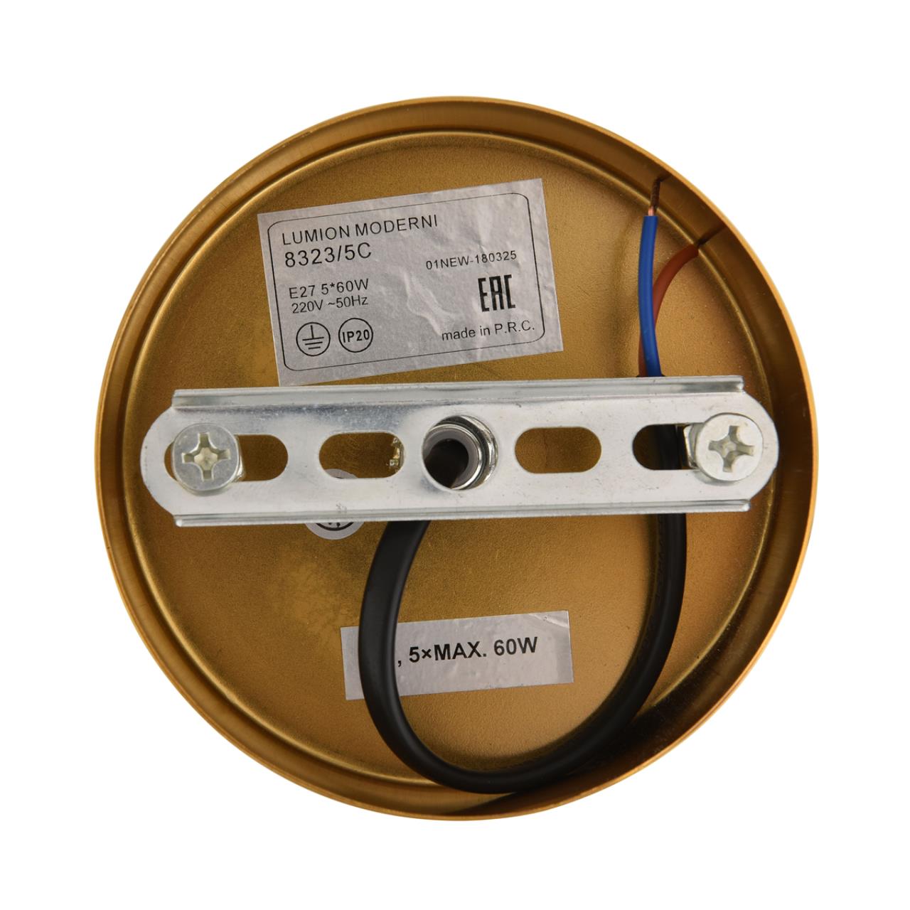 8323/5C MODERNI LN26 038 латунь/белый, металл/стекло/дерево Люстра потолочная E27 5*60W 220V LARINA