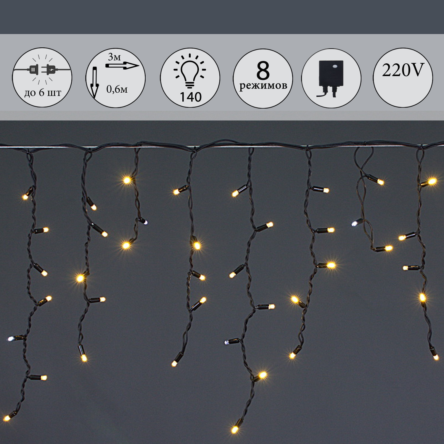 A-020 LED WW/W FLASH светодиодная «бахрома» 3×0.6м 140LED черный провод влагозащ., морозостойкий