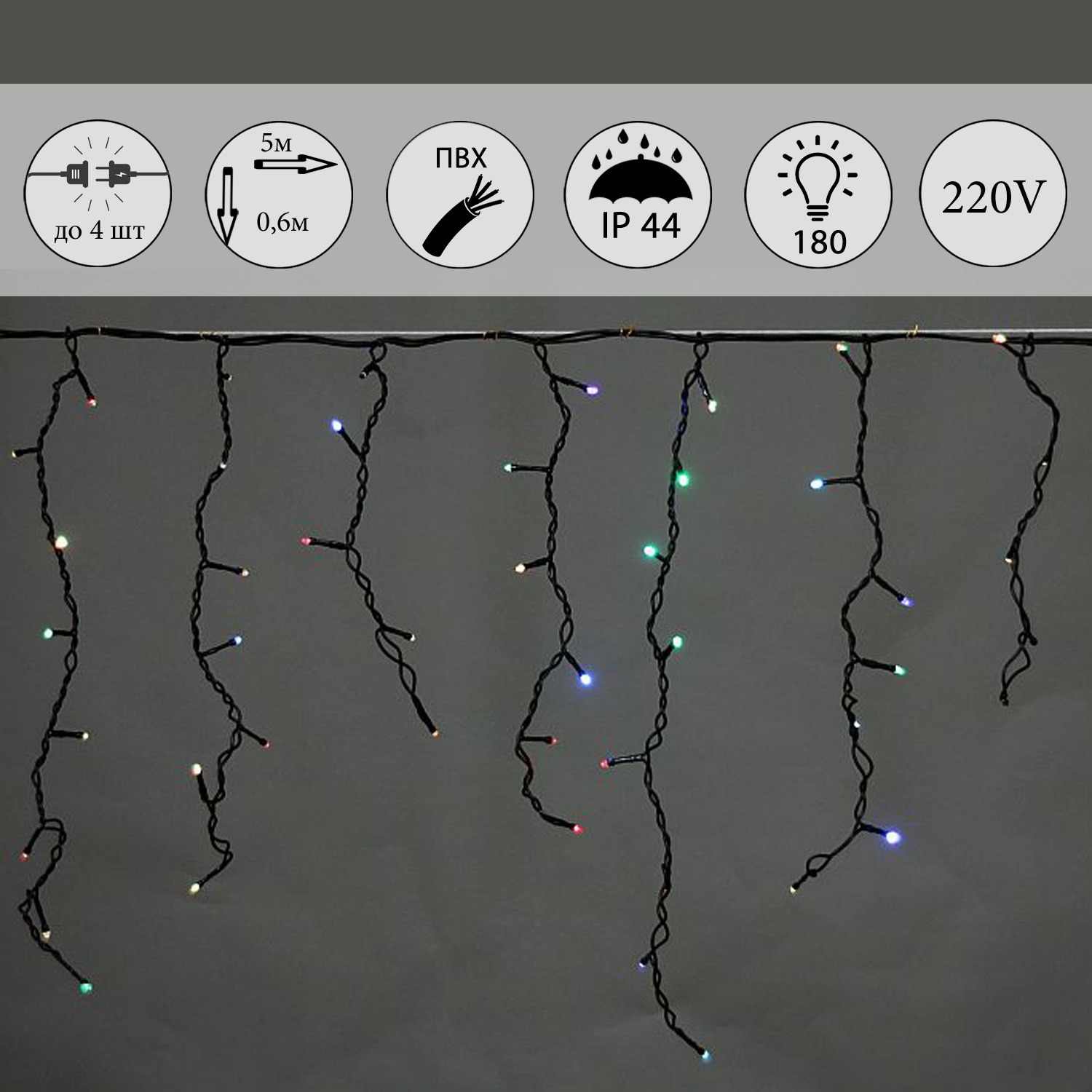 A-056AR RGB светодиодная гирлянда «бахрома» 5×0.6м 180LED черный провод влагозащищен.
