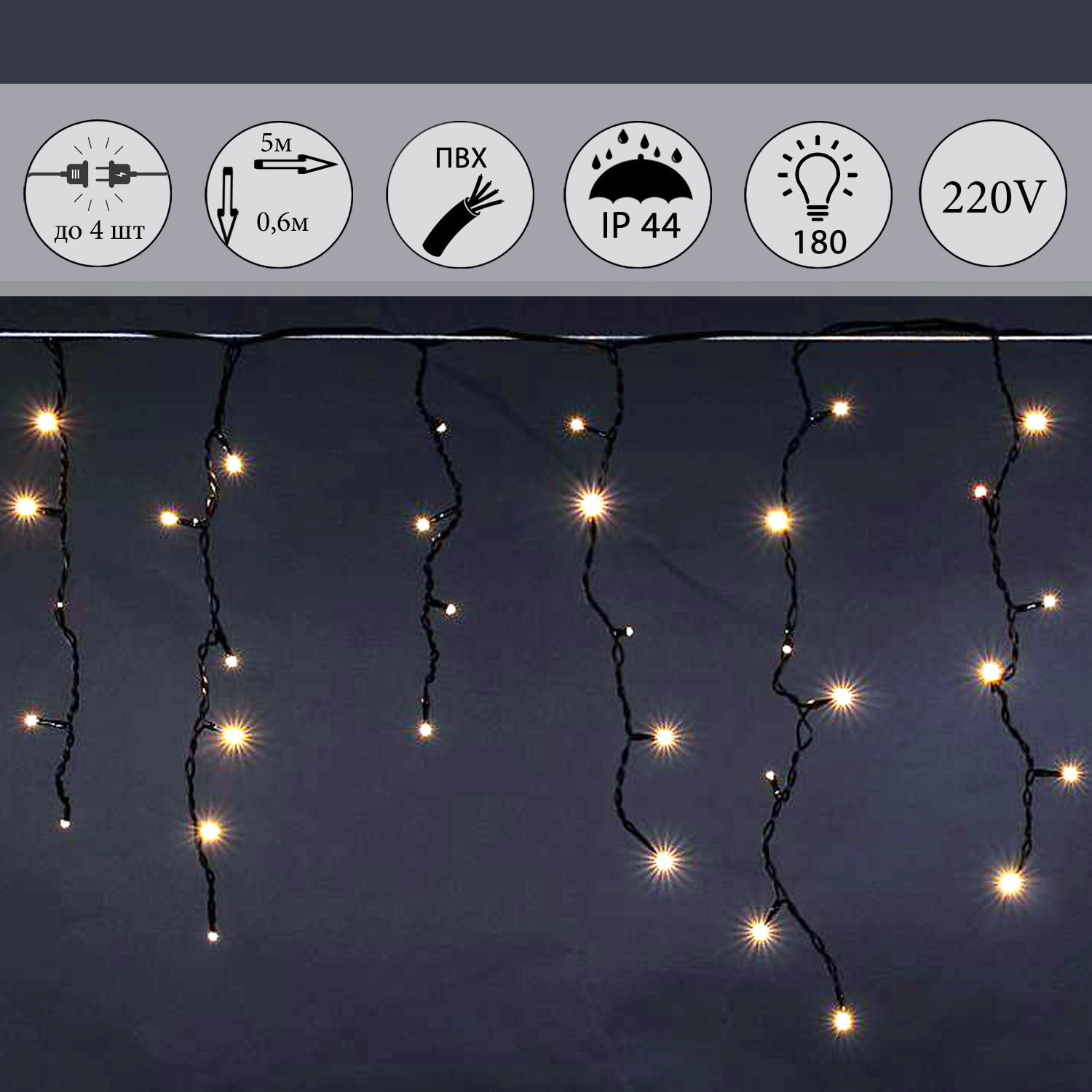 A-056AR WW светодиодная гирлянда «бахрома» 5×0.6м 180LED черный провод влагозащищен.