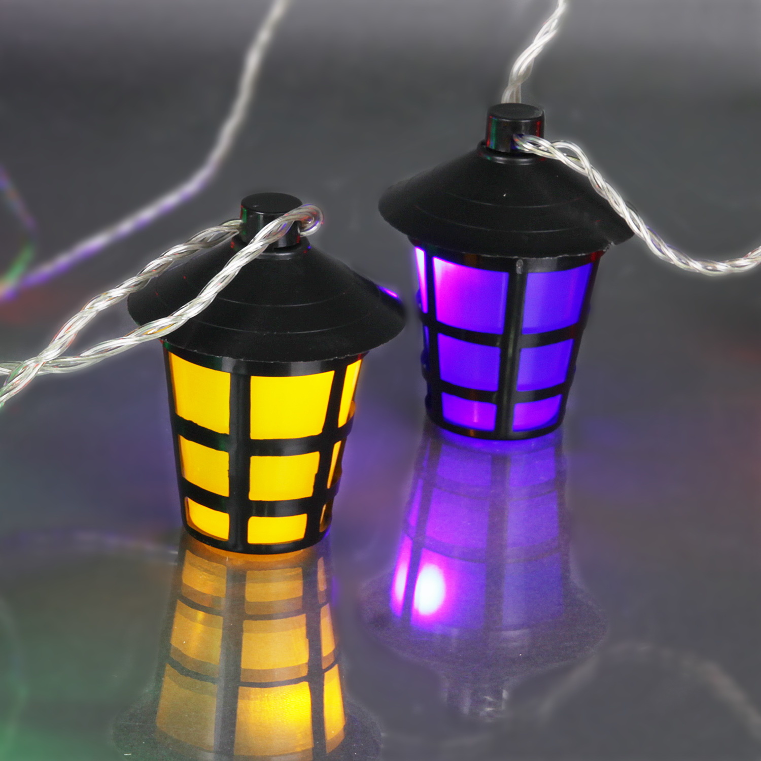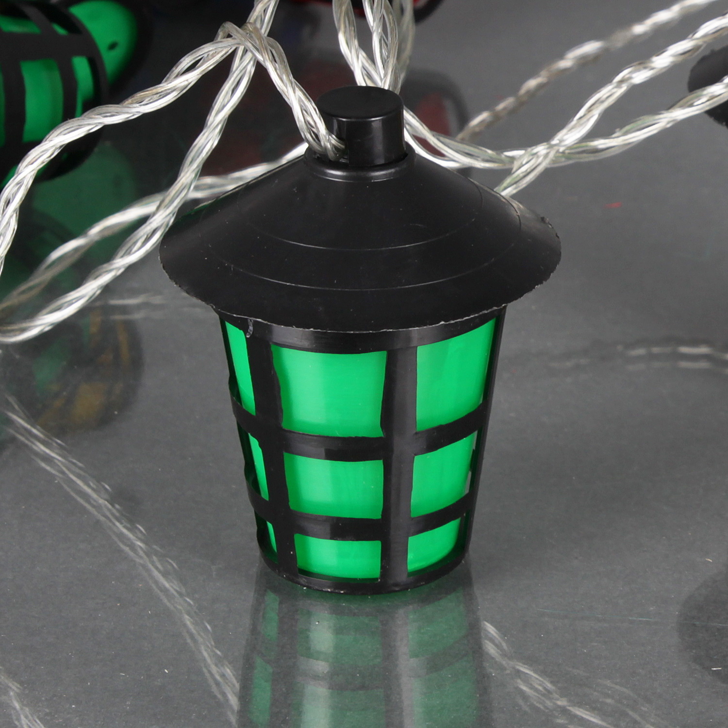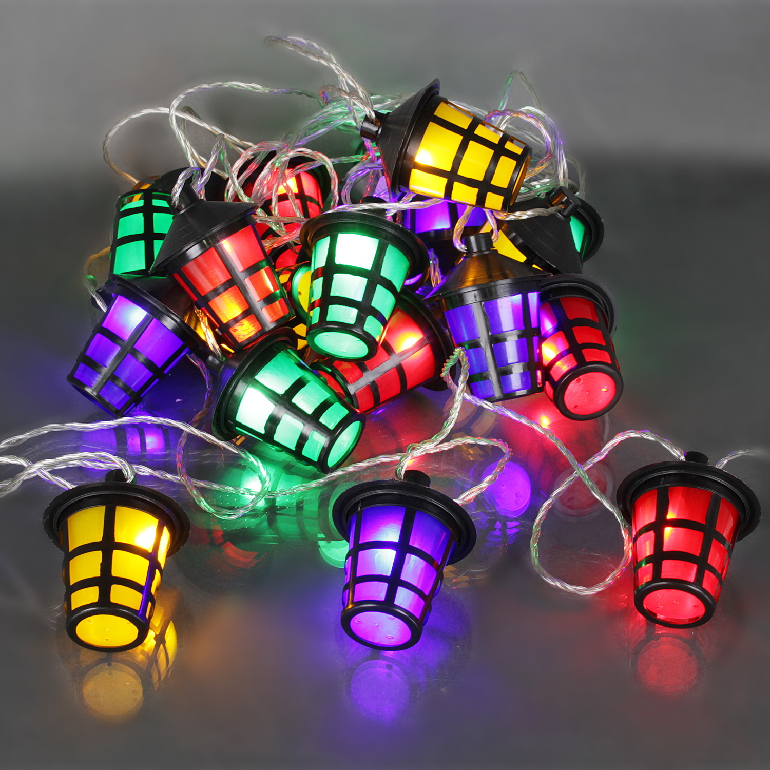 A-209 светодиодная гирлянда длиной 10м прозрачный провод, с насадками «фонарик» 8х6см.