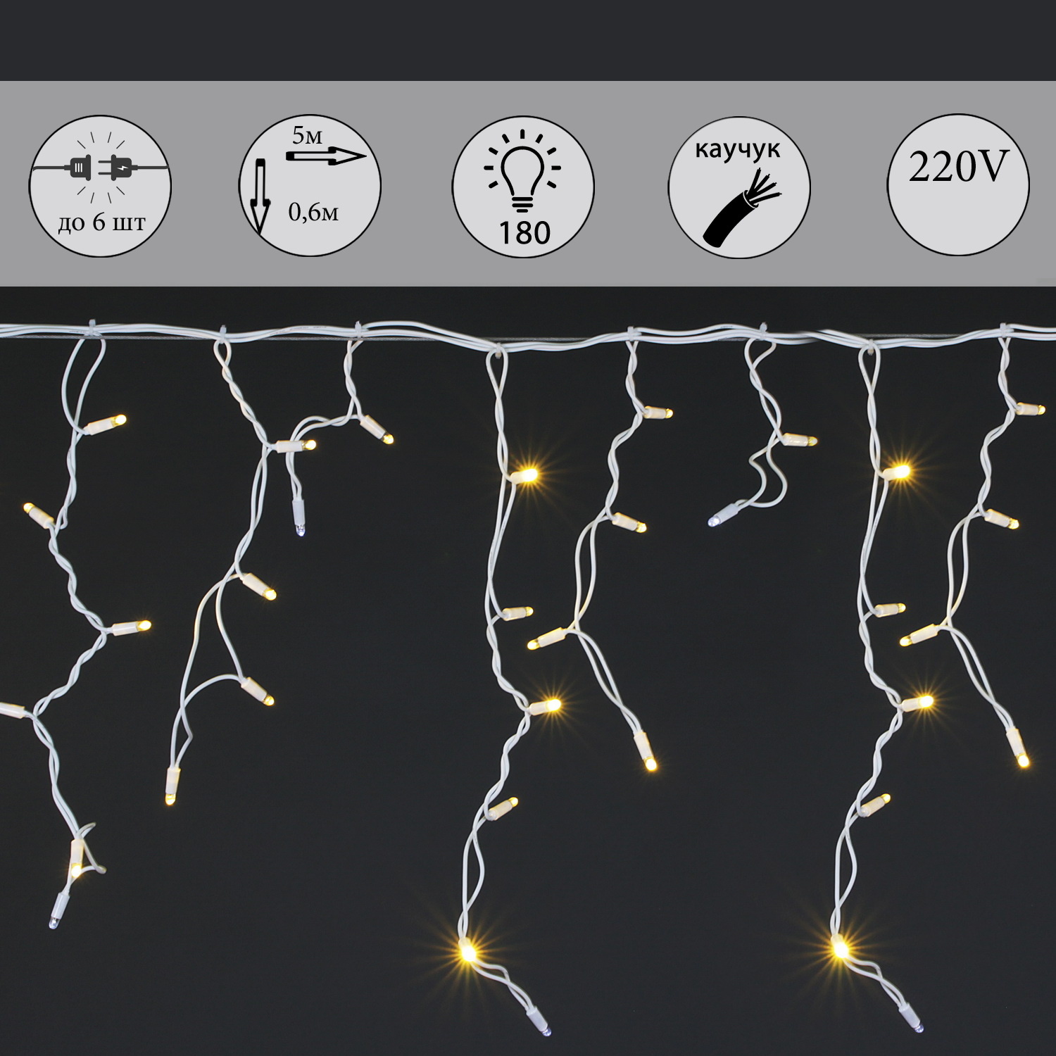 A-507 WW/W FLASH гирлянда светодиодная «бахрома», белый провод 180 LED 5х0,6м, морозоустойчивая