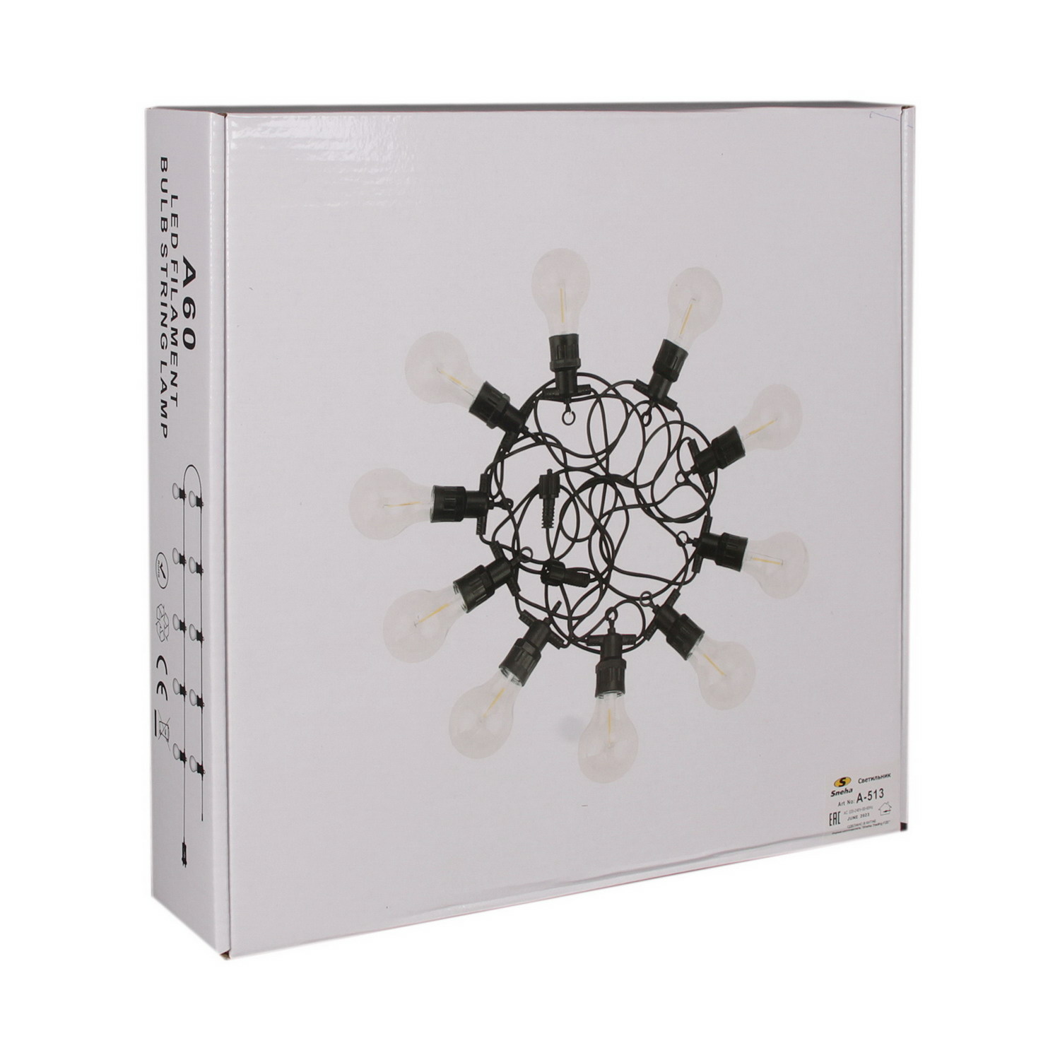 A-513 гирлянда светодиодная, 5м, 10LED «Колба», черный провод