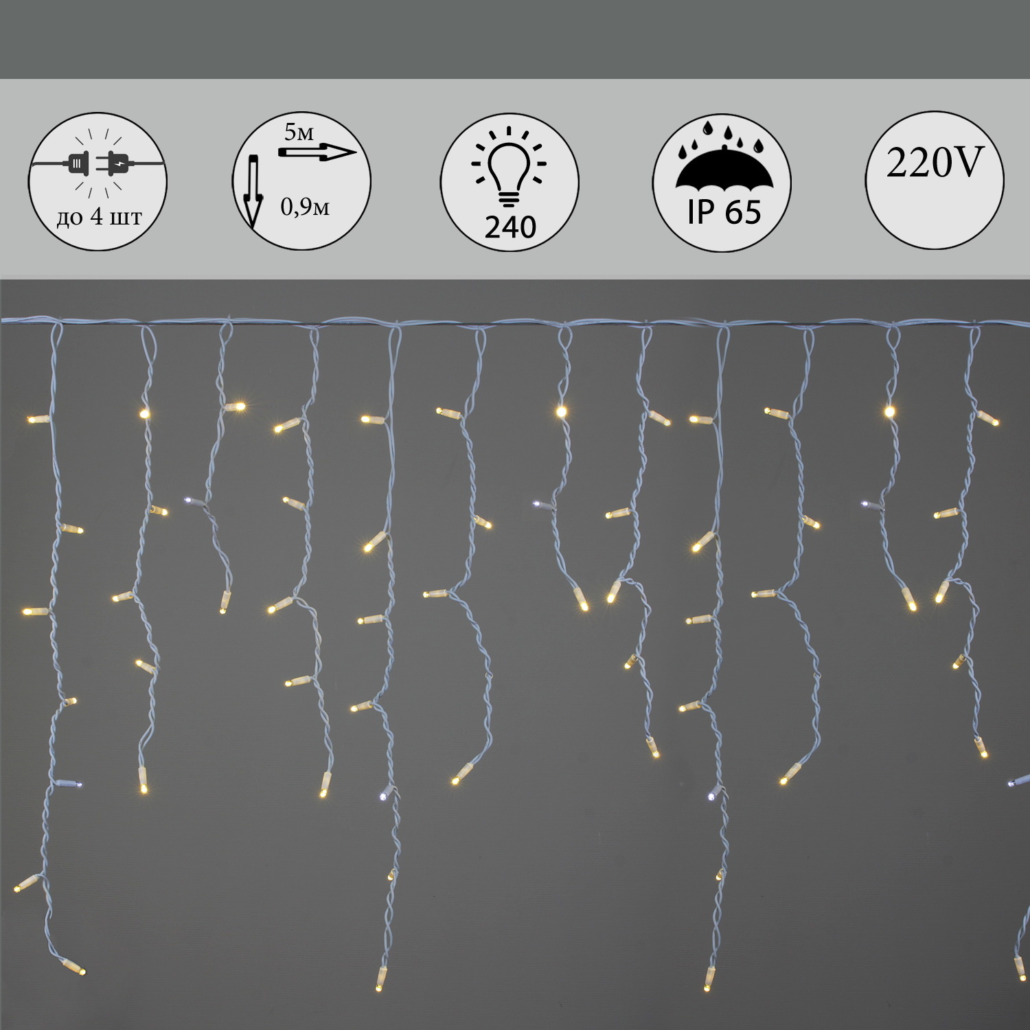 A-517 WW/WT FLASH гирлянда светодиодная «Бахрома», 5х0,9м, 240LED, провод белый, морозостойкий