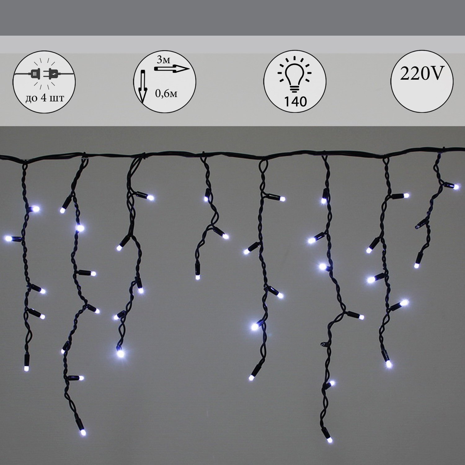 A-520 LED W FLASH светодиодная «бахрома» 3×0.6м 140LED черный провод влагозащ., морозостойкий