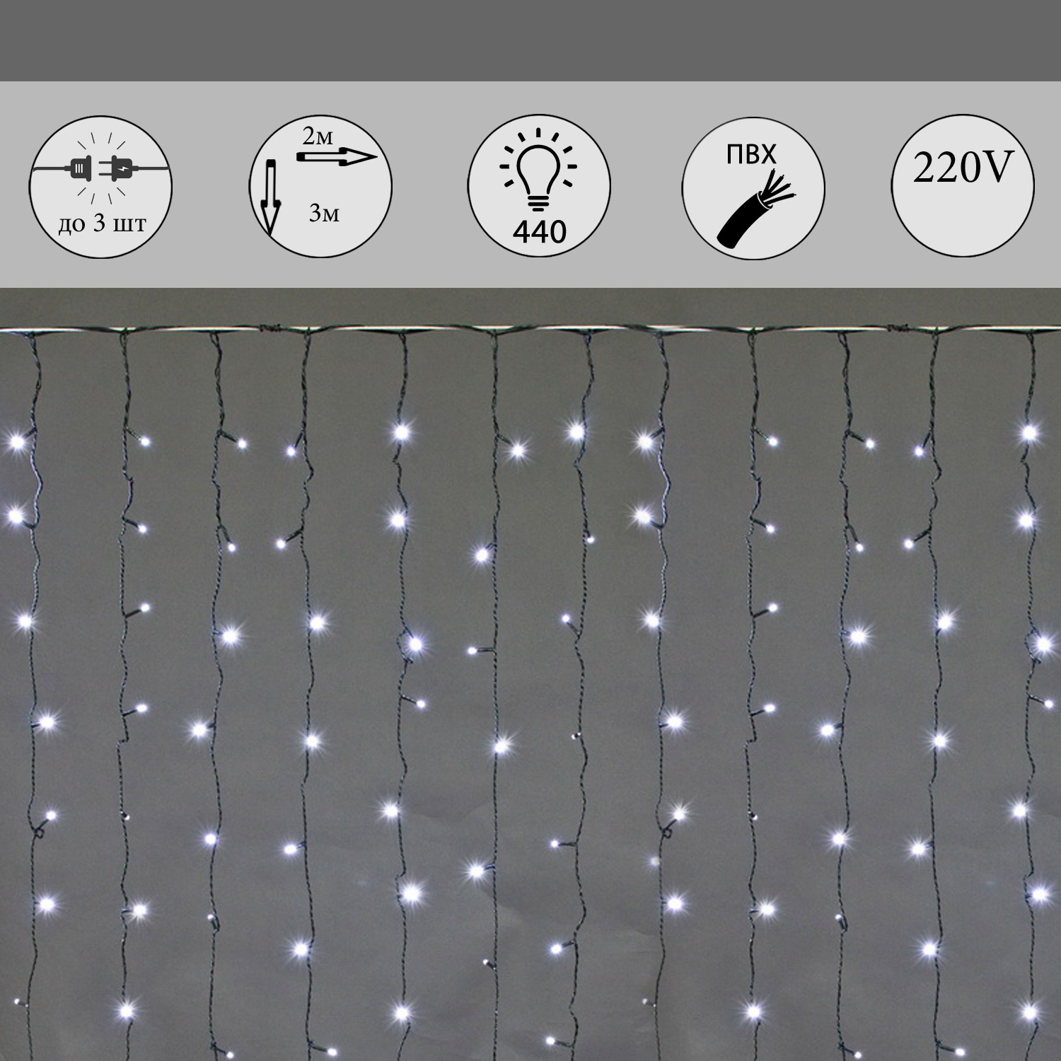 A-945 WT сведодиодный занавес 2*3м 440LED, провод темно-зелёный