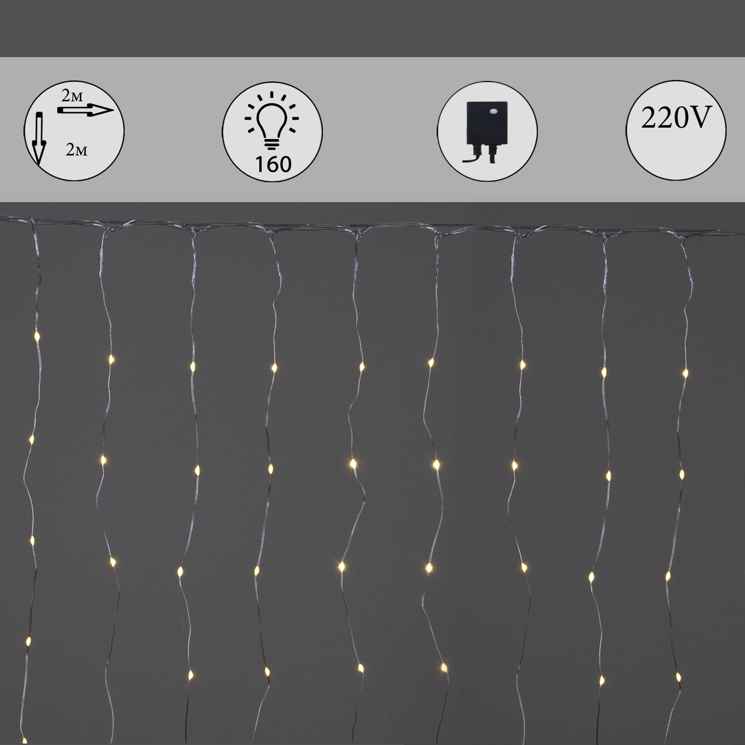 A-963 WW светодиодный занавес 2х2м, 160 LED «Капля», прозрачный шлейф, с контроллером