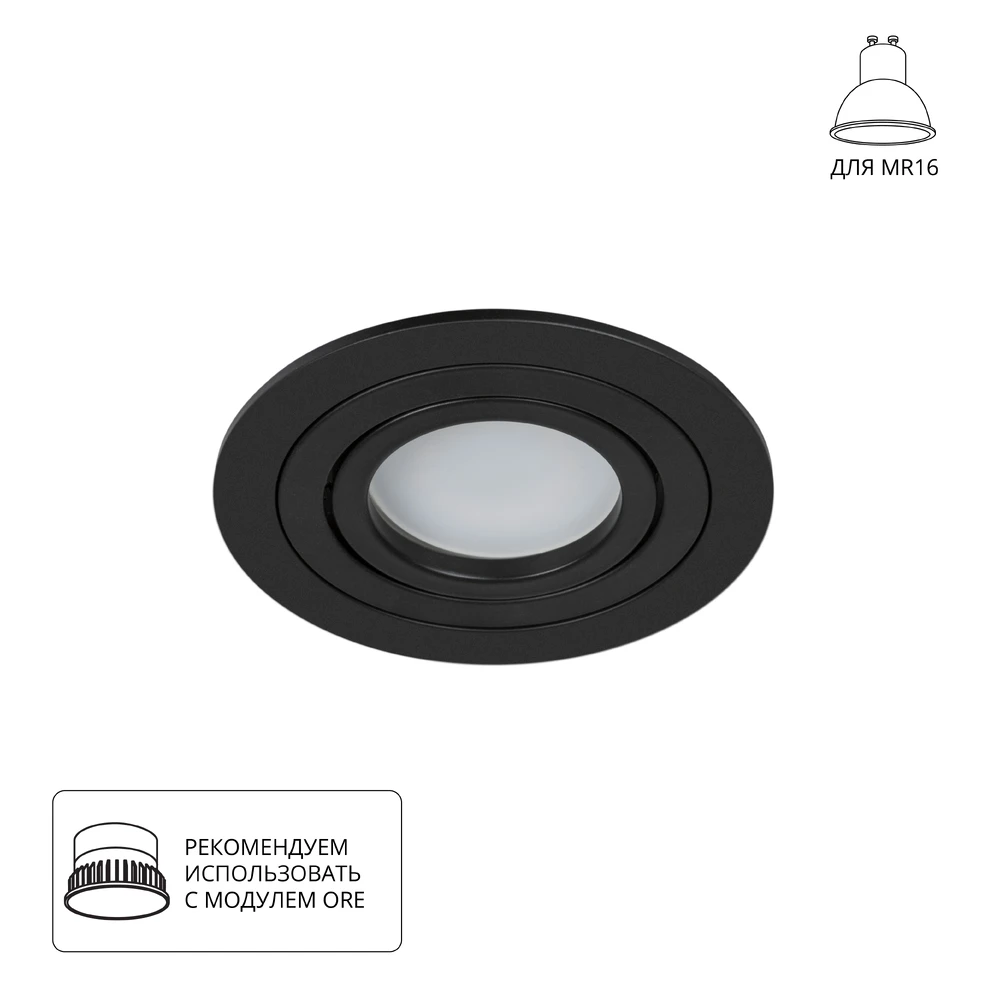 A2167PL-1BK Светильник потолочный встраиваемый TARF для MR16 Ø92×22мм черный IP20 монтаж Ø80мм