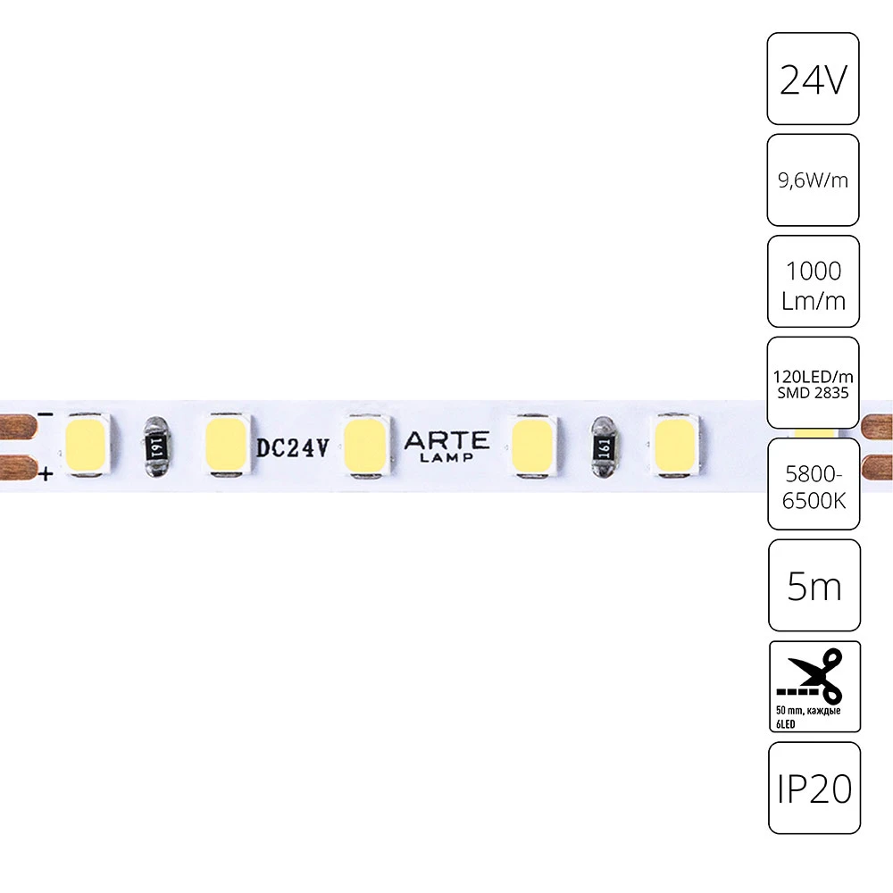 Светодиодная лента 24V 9,6W m 6000К 5м Arte Lamp TAPE A2412005-03-6K