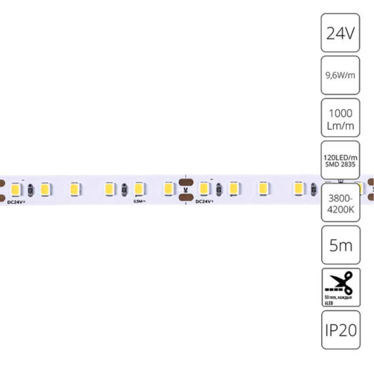 A2412008-02-4K Светодиодная лента 24В 9,6Вт/м 1000Лм/м 4000К 90+ 8мм SMD2835 120шт/м 5м IP20