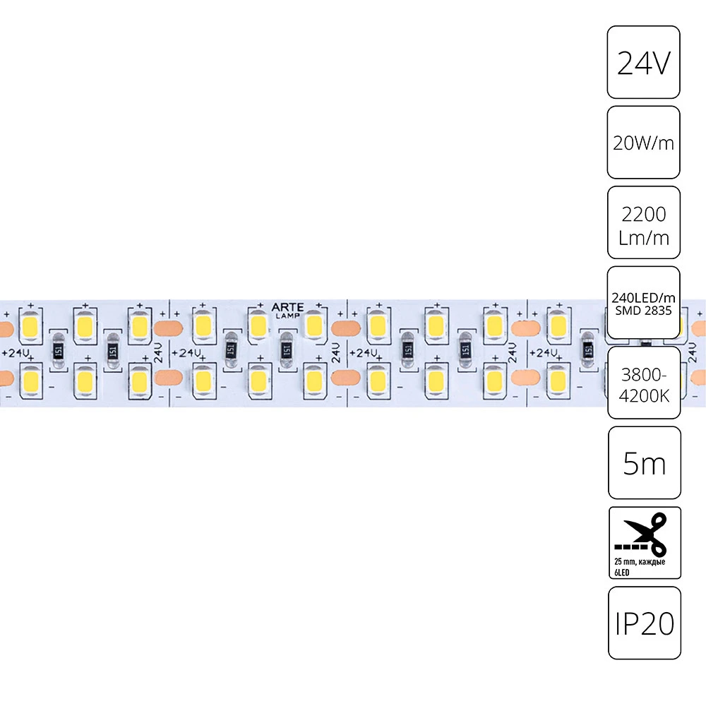Светодиодная лента 24V 20W m 4000К 5м Arte Lamp TAPE A2424015-02-4K