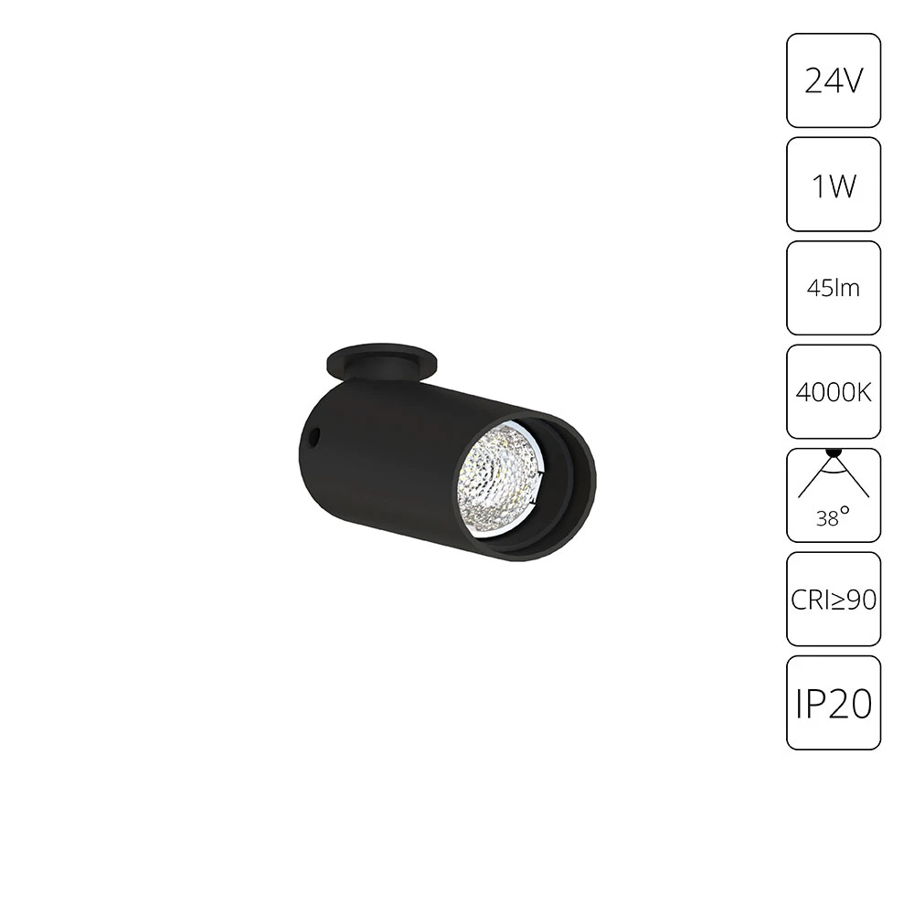 A6181PL-1BK СВЕТИЛЬНИК ЮВЕЛИРНЫЙ ВСТРАИВАЕМЫЙ PRESTO 24В 1Вт 45лм 4000К 90+ 38°