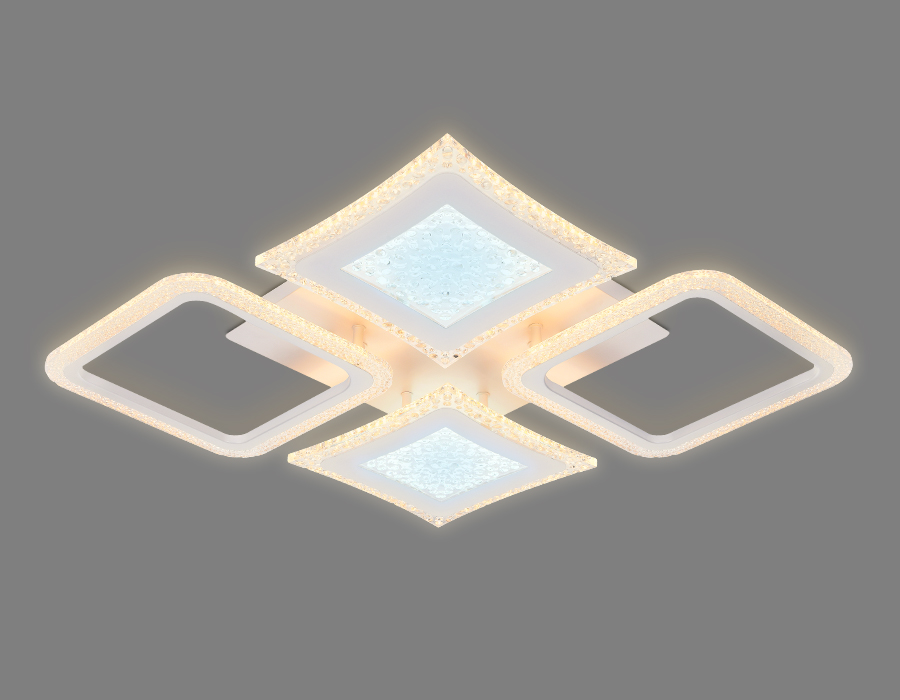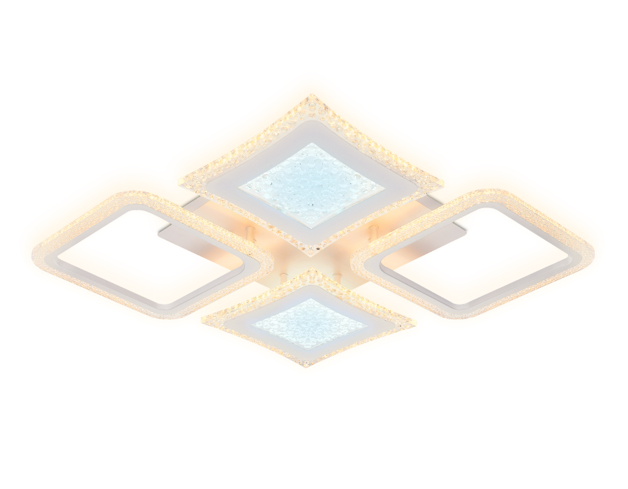 Потолочный светодиодный светильник из серии ACRYLICA, коллекция Original. Модель FA430 выполнена в современном стиле Хай-тек. Светильник в форме ромба, белого цвета, изготовлен из акрила и металлического корпуса. В конструкцию этого светильника уже встроены светодиоды, что исключает поиск или замену дополнительных ламп. С помощью мобильного приложения и радиоуправляемого пульта вы сможете регулировать цветовую температуру, яркость освещения и ночной режим. Эти светильники подходят для натяжных потолков и будут прекрасным дополнением в гостиной, спальне или детской комнате.