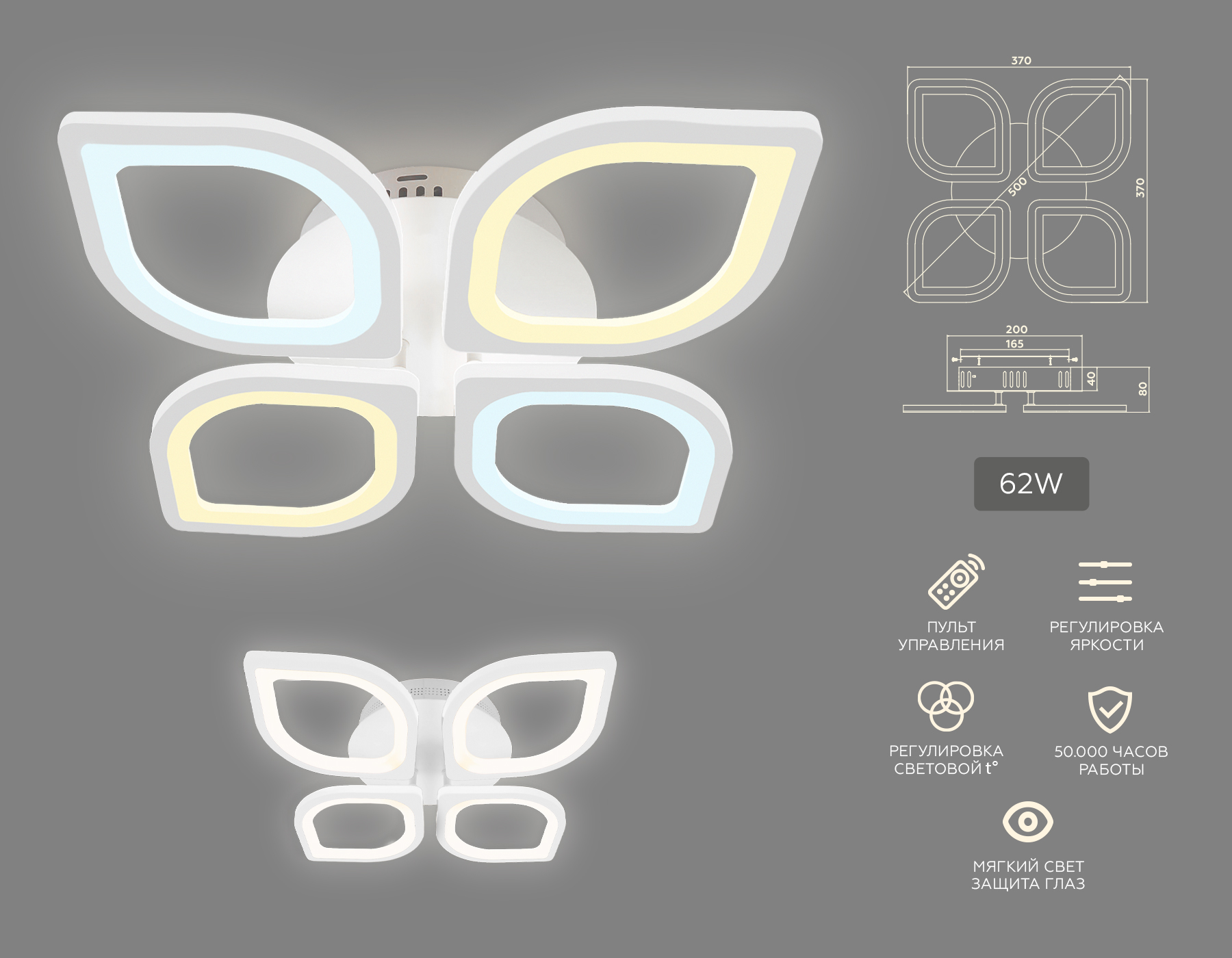 FA4488/4 WH белый 4200K/3000K+6400K/6400K+3000K 62W 500*500*150 (ПДУ ИК)