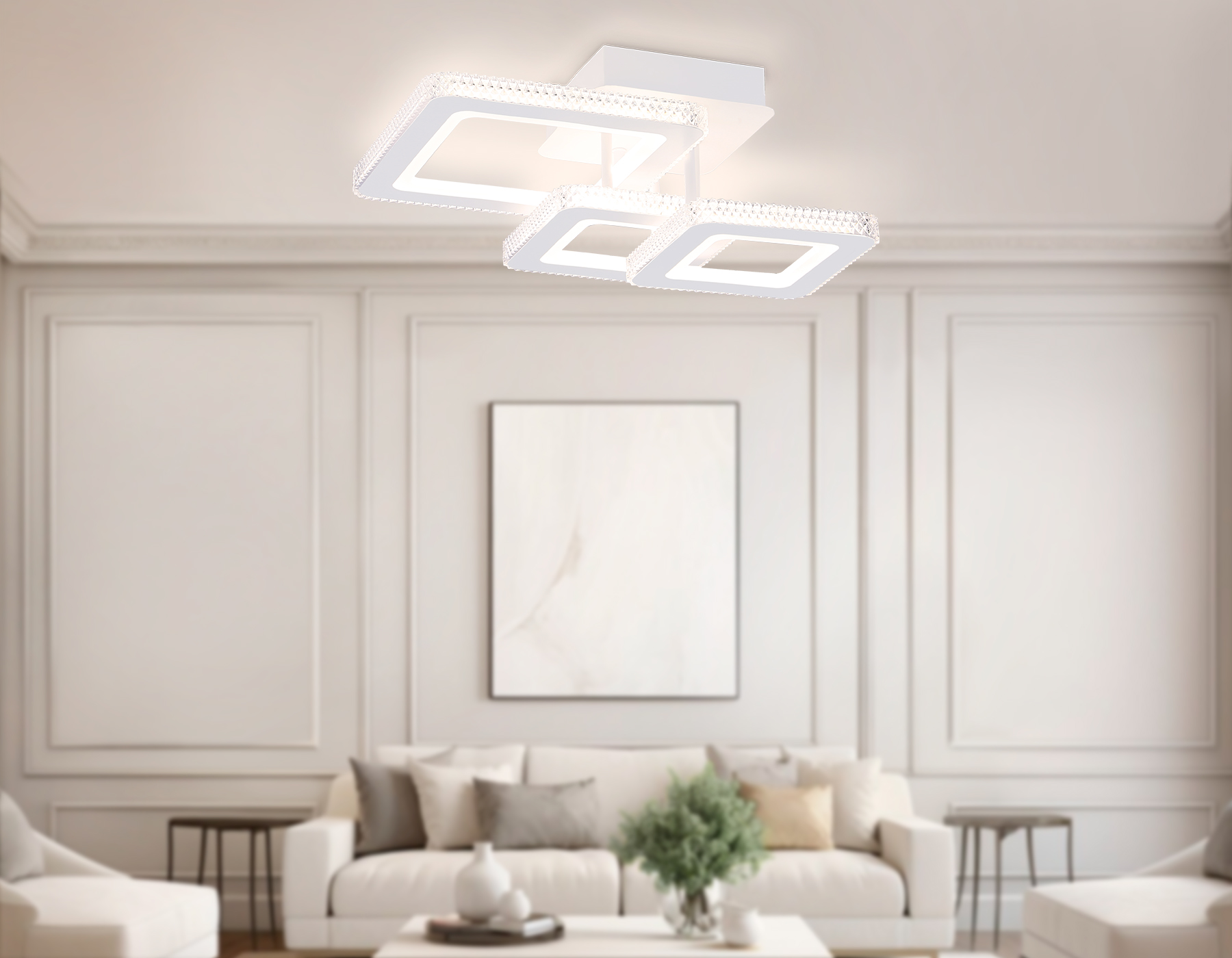 Современный потолочный светодиодный светильник, коллекция ACRYLICA. Модель FA8877 представлена в современном стиле Неоклассика. Светильник выполнен в белом цвете, состоит из 3 акриловых плафонов на металлическом каркасе. Эта модель оснащена встроенными светодиодами, благодаря чему вы забудете о замене дополнительных ламп. Так же с помощью инфракрасного пульта вы сможете регулировать цветовую температуру, яркость освещения и ночной режим. Данная модель подходит для натяжных потолков и будет прекрасным дополнением в любом помещении.