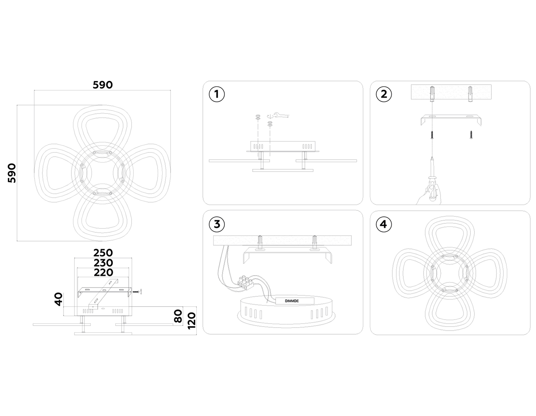 FA8925/4+1 WH/CH белый/хром 163W 3000K-6400K 590*590*120 (ПДУ РАДИО 2.4G)