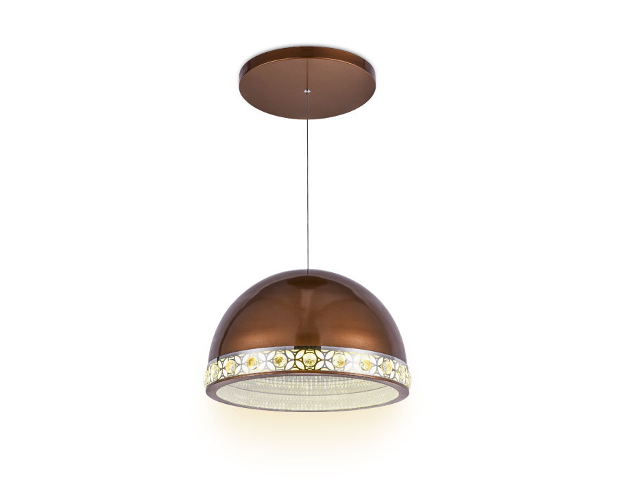 Подвесной светодиодный светильник из коллекции ACRYLICA Ice. Великолепная модель FA9497 выполнена в современном стиле Неоклассика. Бесподобный хрустальный декор придает особый шик светильникам этой коллекции. Эта модель круглой формы, металлический корпус кофейного цвета. Благодаря встроенным в конструкцию светодиодам, вы можете с уверенностью забыть о поиске или замене дополнительных ламп. Эта модель подходит для натяжных потолков и будет прекрасным дополнением в гостиной, спальне или детской комнате.