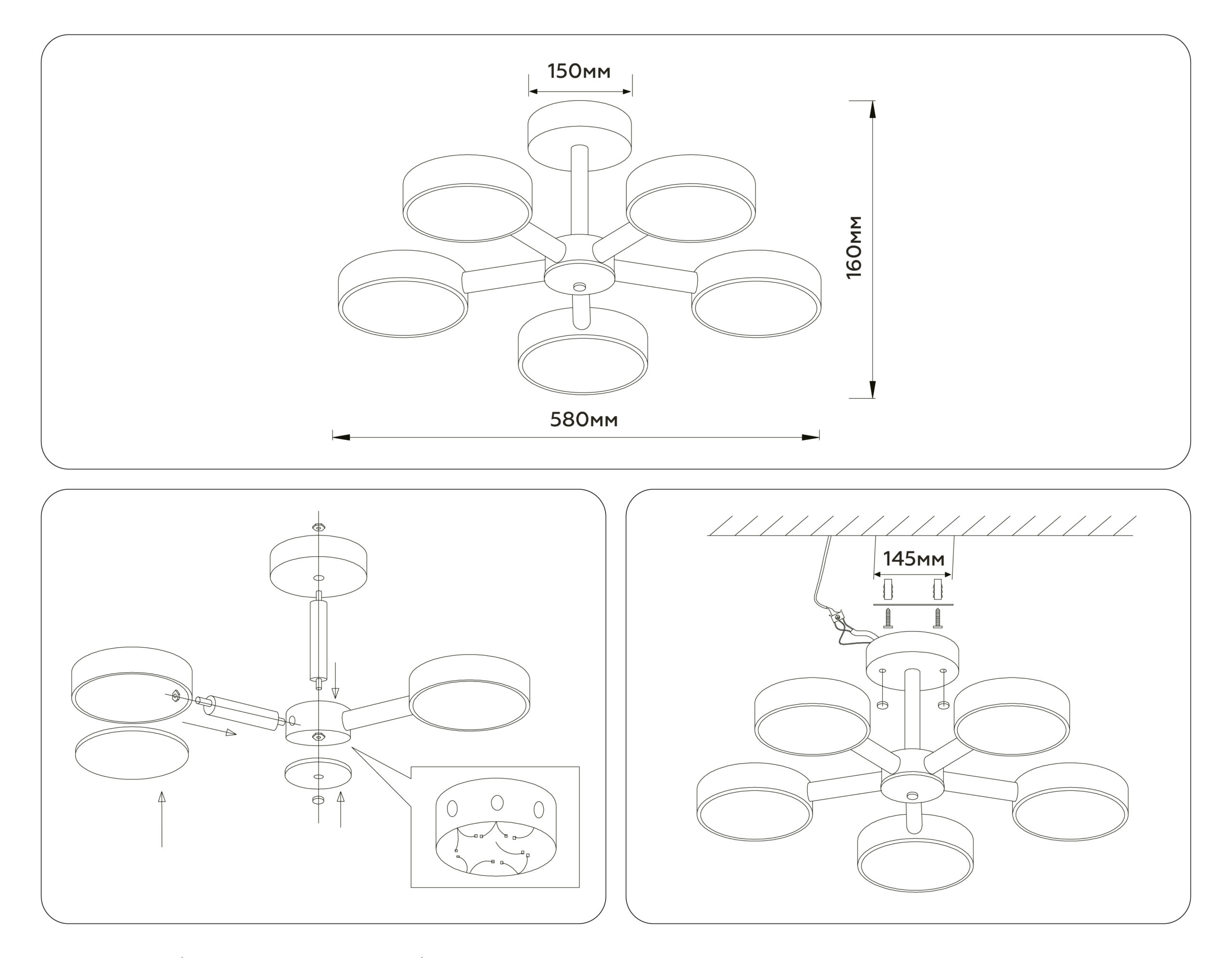 FL4828/5 BK черный 3000K-6400K 65W D580*160 (ПДУ ИК)