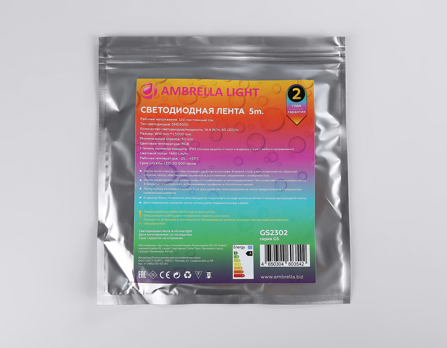 Светодиодная лента RGB Ambrella Light GS2302 5050 60Led /14.4W m/ 12V IP65 RGB 5m