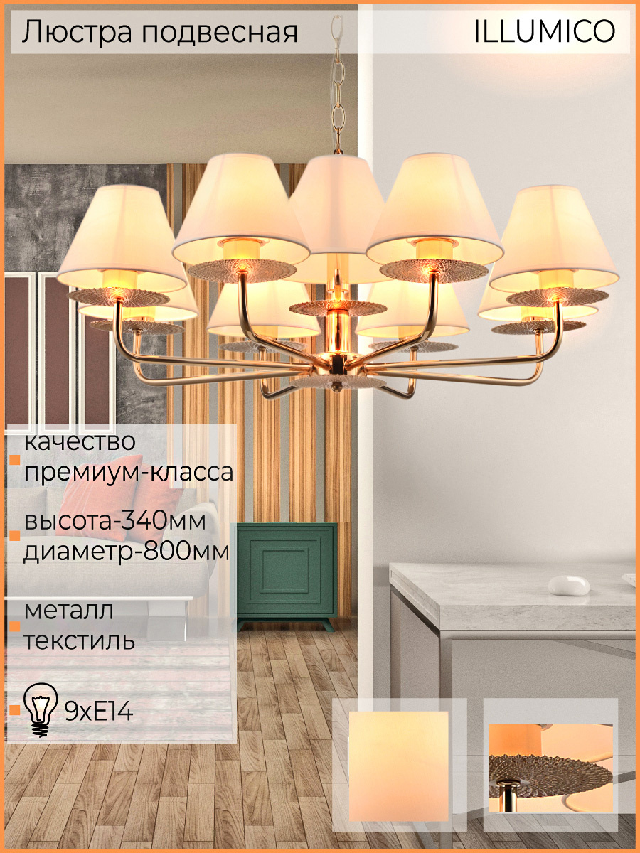 Люстра потолочная ILLUMICO E14 IL6197-9P-17 GD