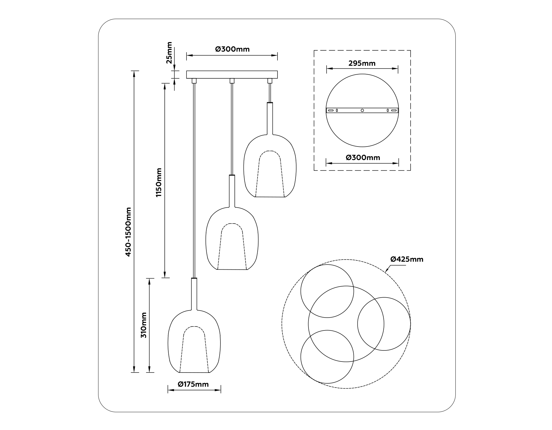 LH11153/3 BK/WH/SM черный/белый/дымчатый E27*3 max 60W D425*1500