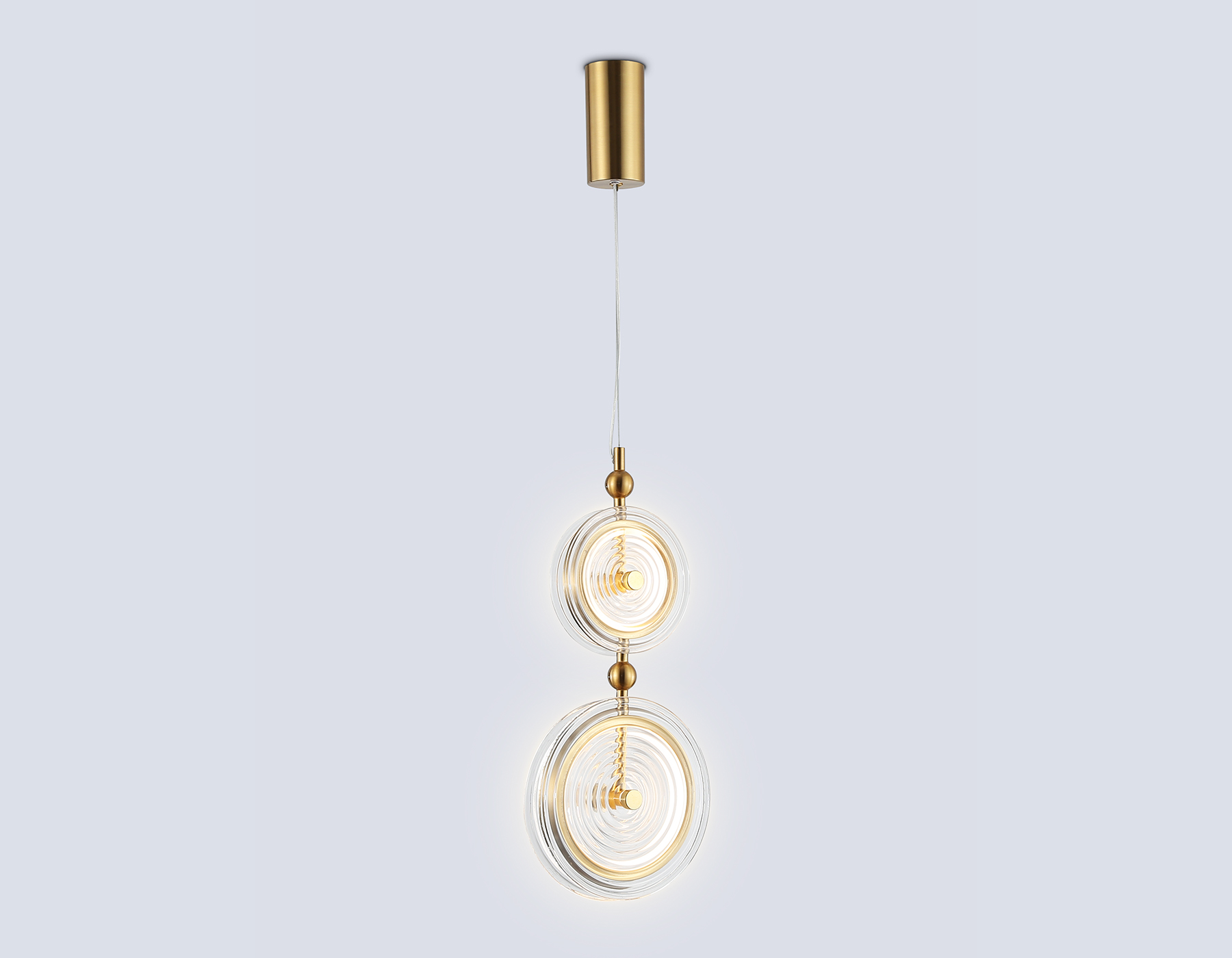 Подвесной светодиодный светильник из коллекции HIGH LIGHT. Модель LH31127 представлена в стиле неоклассика. Светильник выполнен из металлического каркаса цвета латунь и двух стеклянных плафонов. Эта модель оснащена встроенными светодиодами, благодаря чему вы забудете о замене дополнительных ламп. Светильник будет прекрасным дополнением в любом помещении.