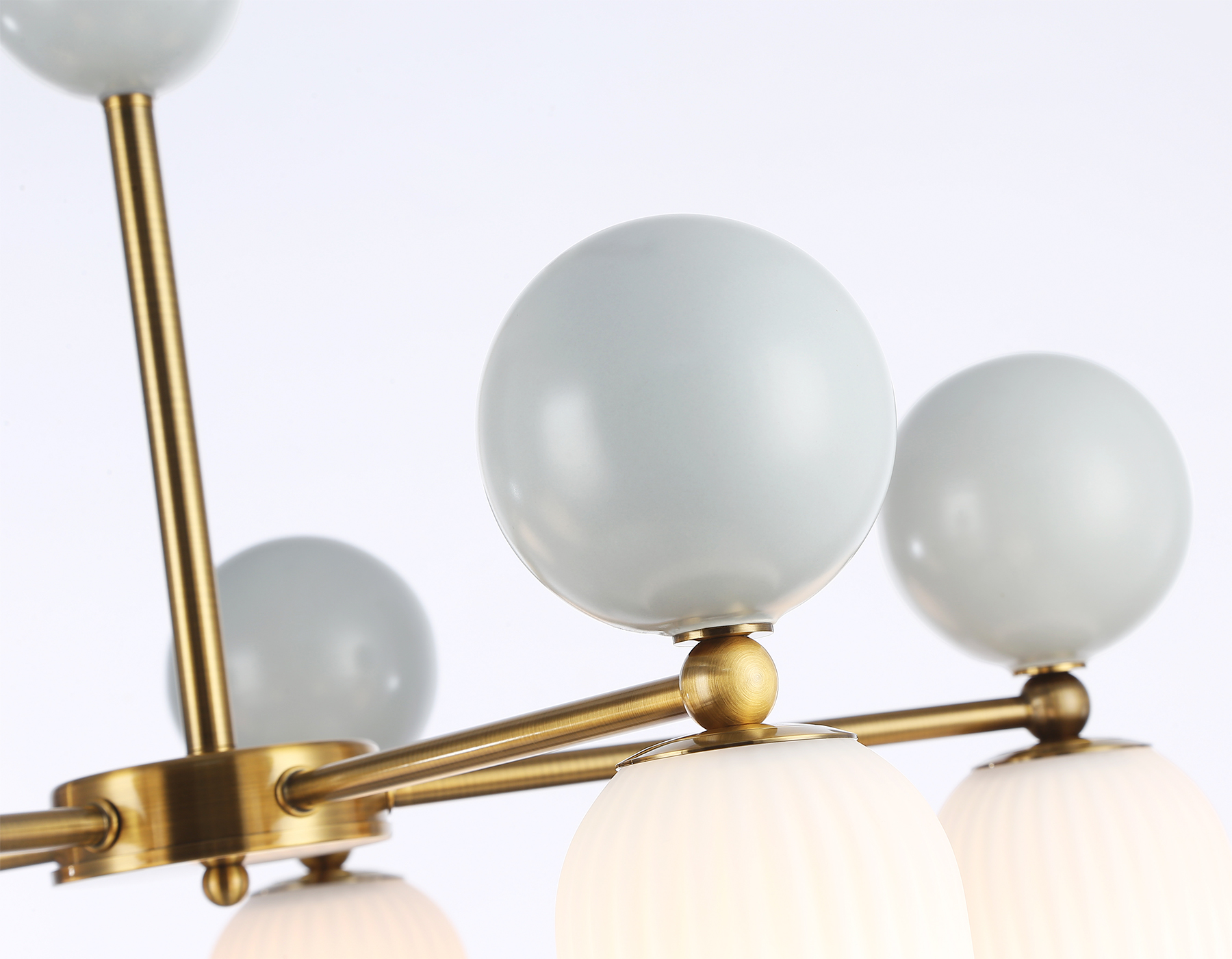 Люстра на штанге из коллекции HIGH LIGHT. Модель LH53104 представлена в стиле модерн. Люстра выполнена из металлического каркаса цвета латунь, стеклянных матовых плафонов и декорирована керамическими элементами. Для данной модели подойдут лампы с цоколем G9. Люстра будет прекрасным дополнением в любом помещении.