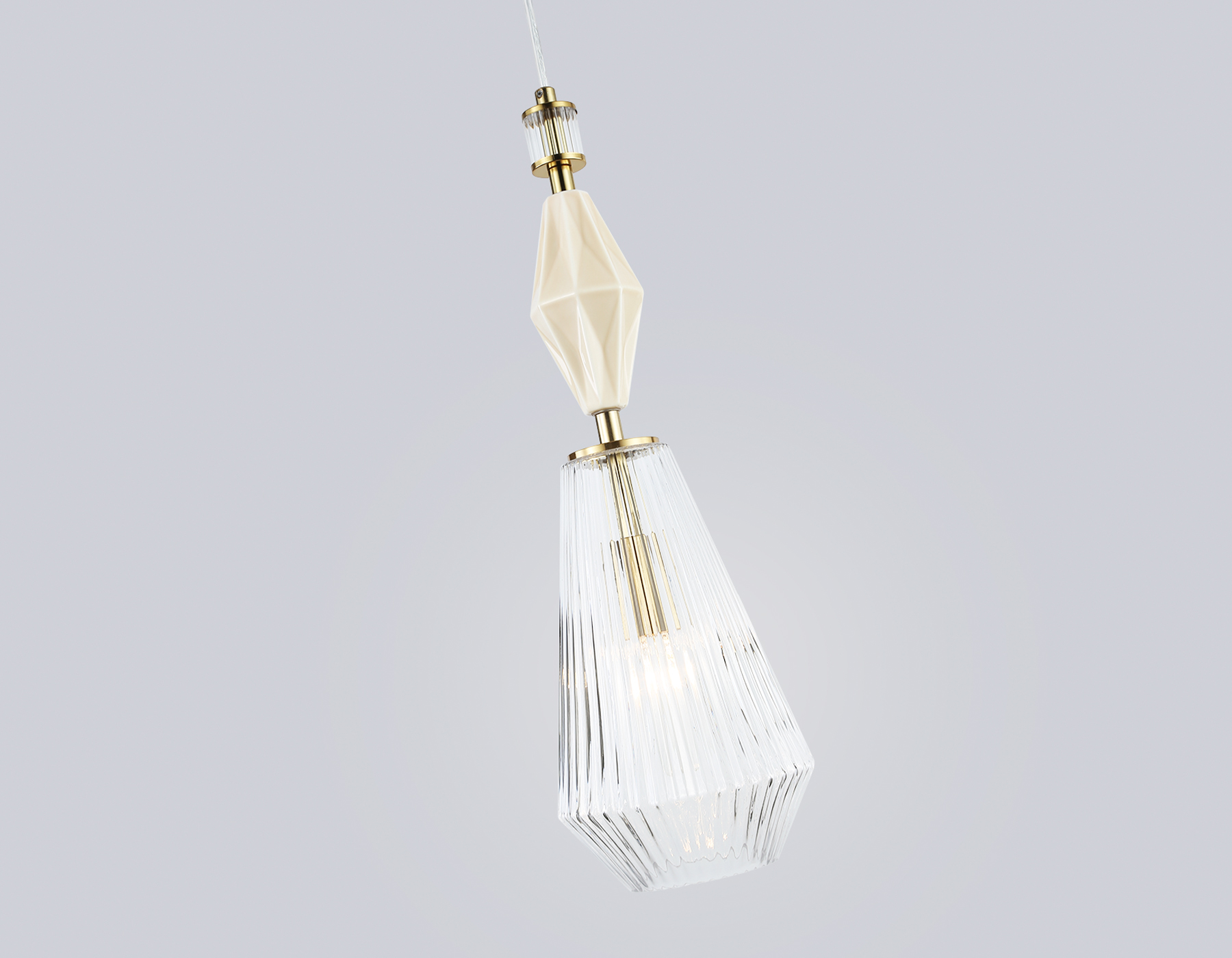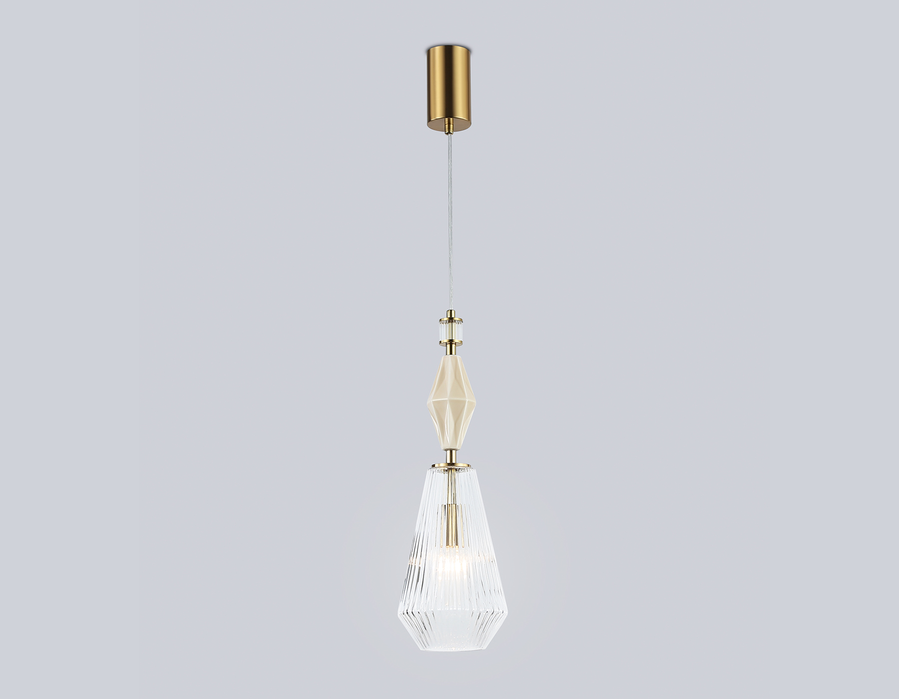 Подвесной светильник с керамикой из коллекции HIGH LIGHT. Модель LH53181 представлена в современном стиле неоклассика. Светильник выполнен из металлического каркаса цвета латунь, стеклянного плафона и декорирован элементами из керамики. Для данной модели подойдет сменная лампа с цоколем Е14. Светильник будет прекрасным дополнением в любом помещении.
