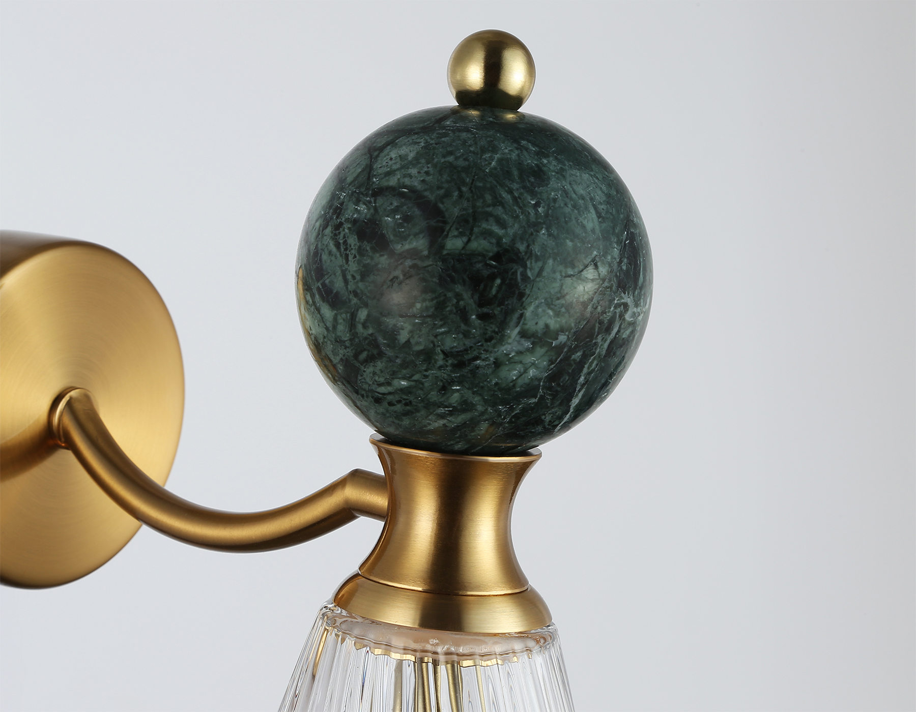 Настенный светильник с мрамором из коллекции HIGH LIGHT. Модель LH53294 представлена в стиле неоклассика. Светильник выполнен из металлического каркаса цвета латунь, стеклянного плафона и декорирован элементами из мрамора зеленого цвета. Для данной модели подойдут лампы с цоколем Е14. Люстра будет прекрасным дополнением в любом помещении.