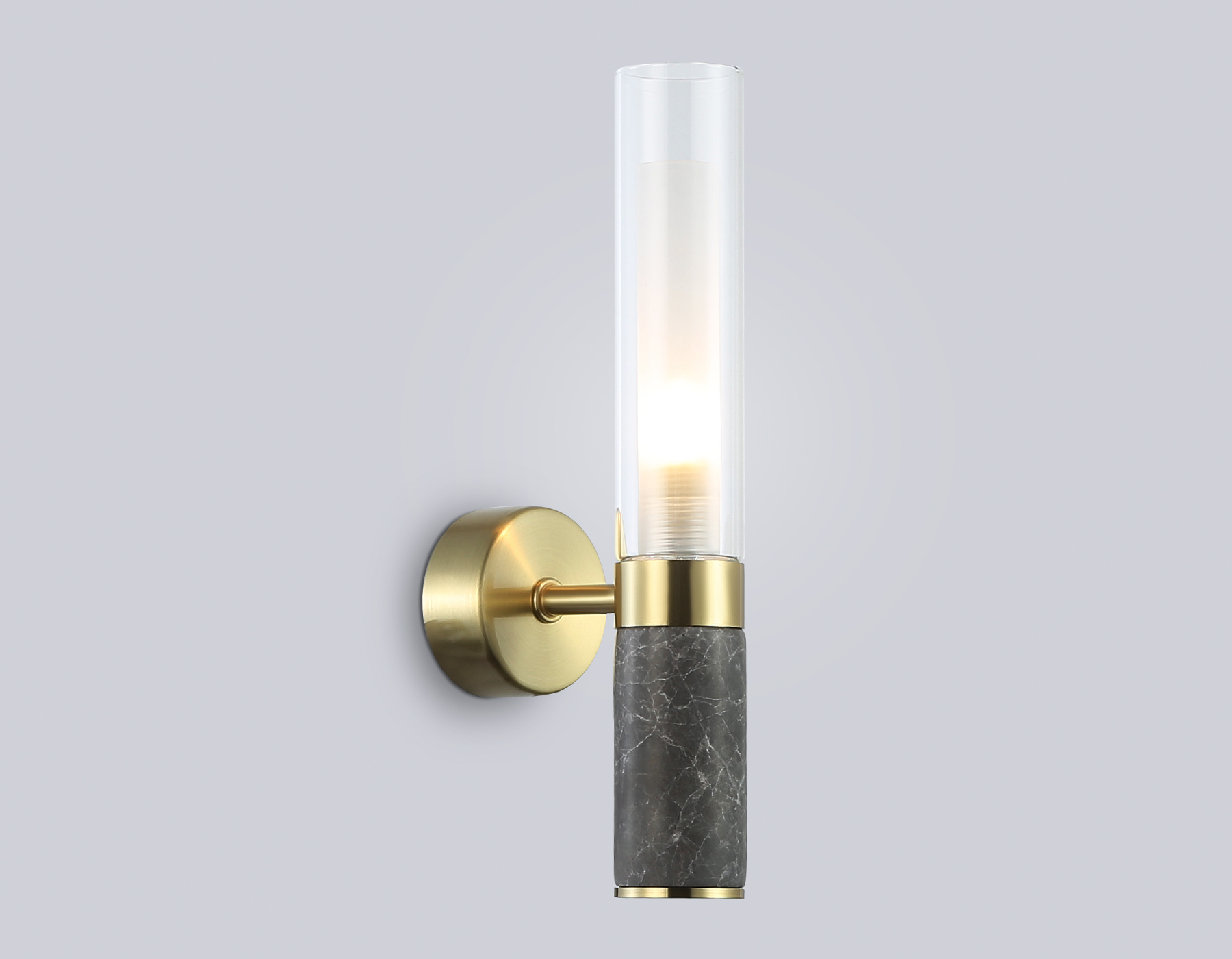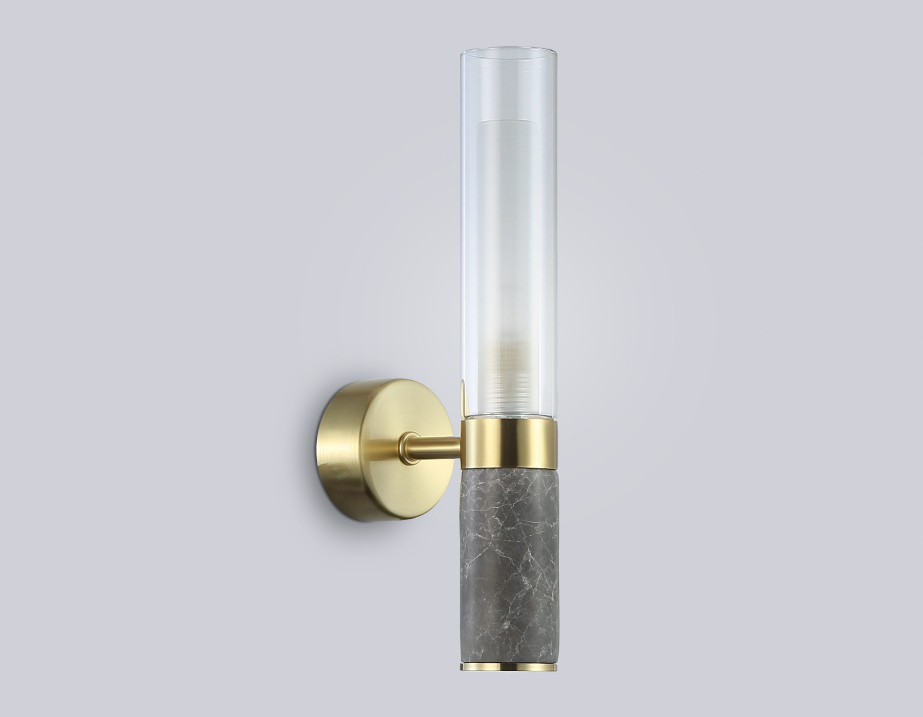 Настенный светильник с мрамором из коллекции HIGH LIGHT. Модель LH53357 представлена в современном стиле модерн. Светильник выполнен из металлического каркаса цвета золото, стеклянного плафона и декорирован элементами из мрамора серого цвета. Для данной модели подойдут лампы с цоколем G9. Люстра будет прекрасным дополнением в любом помещении.