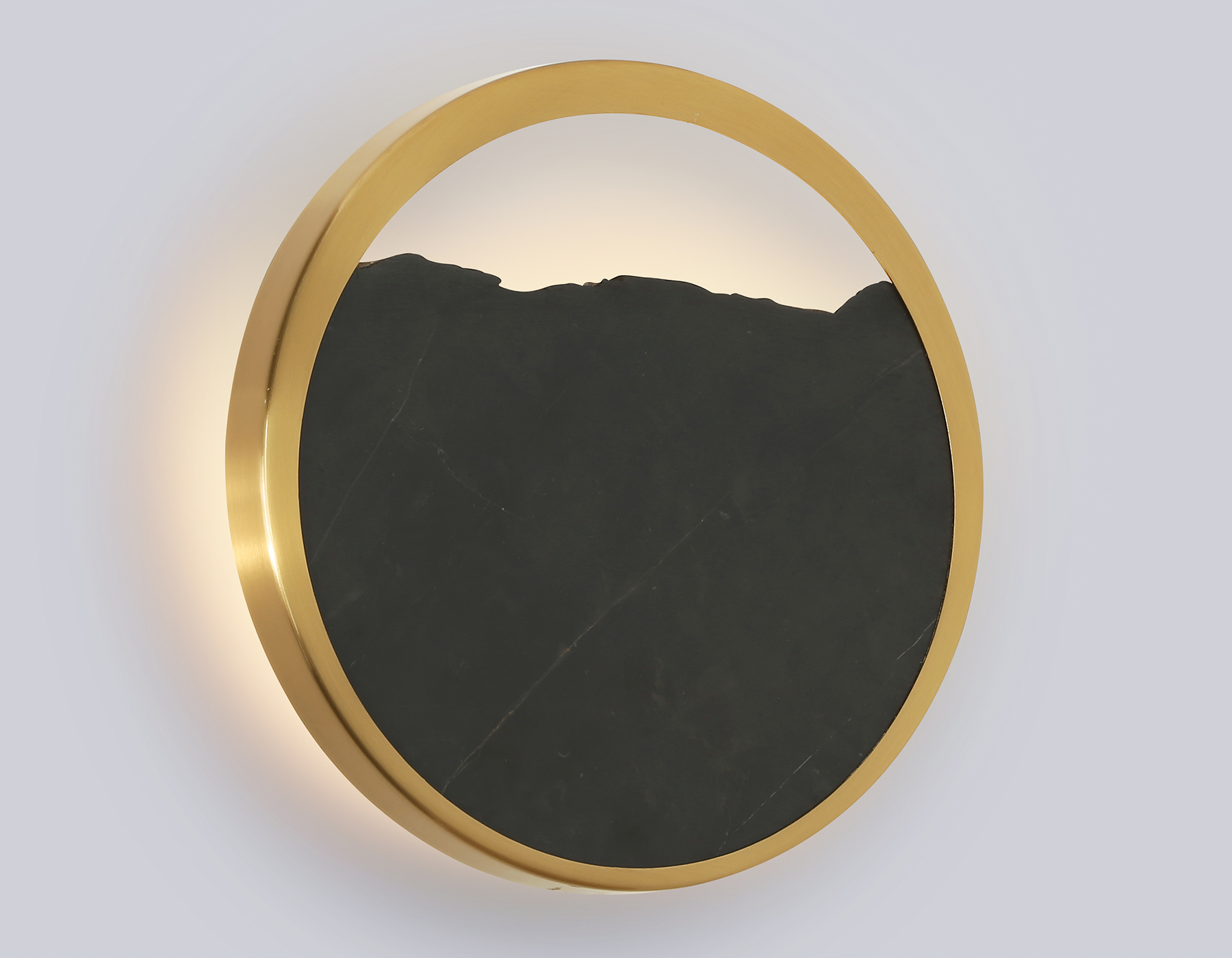 Настенный светильник с мрамором из коллекции HIGH LIGHT. Модель LH53613 представлена в современном стиле модерн. Светильник выполнен из металлического каркаса цвета латунь и декорирован элементами из черного мрамора. Эта модель оснащена встроенными светодиодами, благодаря чему вы забудете о замене дополнительных ламп. Светильник будет прекрасным дополнением в любом помещении.