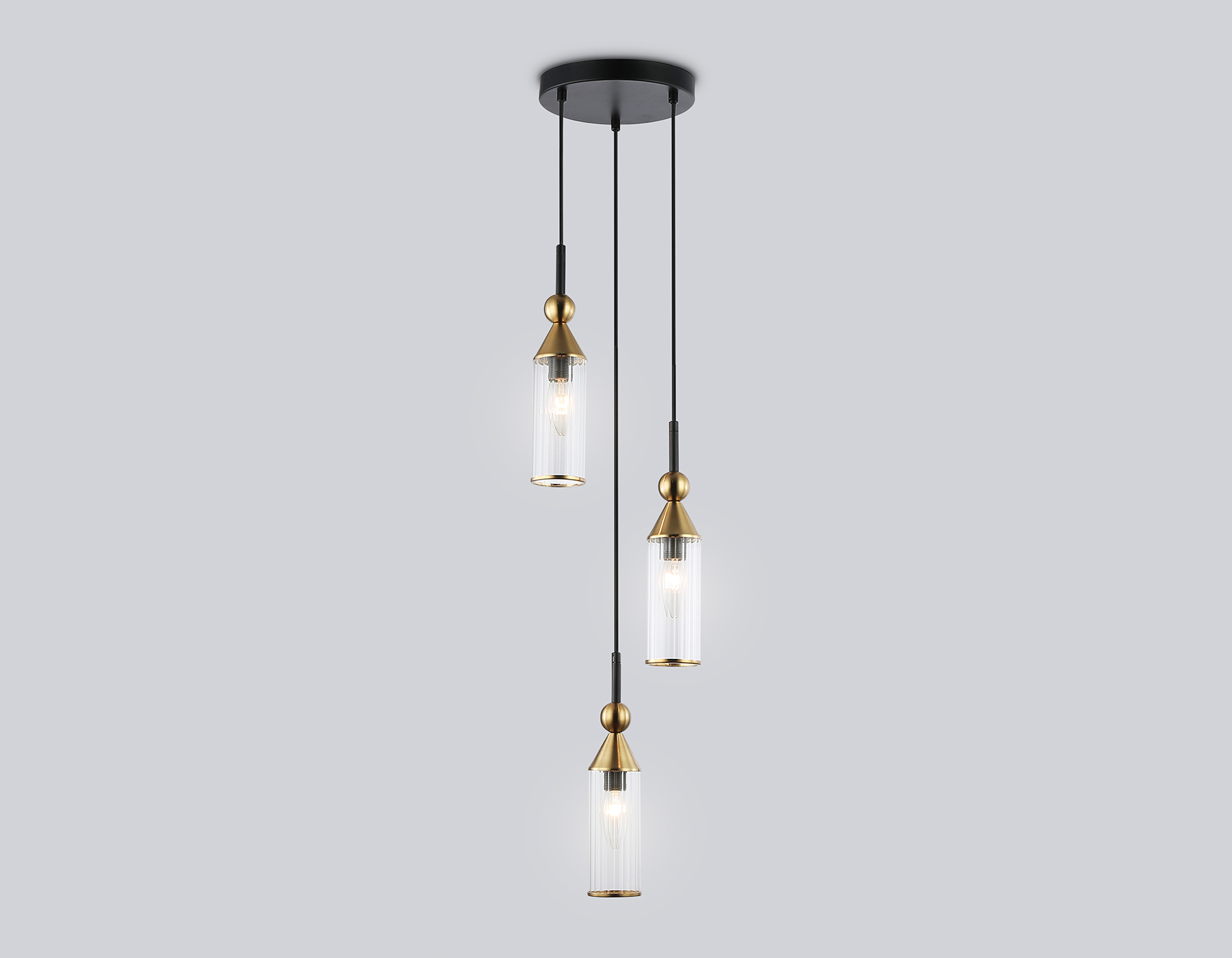 LH55252/3 BK/BS/CL черный/латунь/прозрачный E14*3 max 40W D230*1200