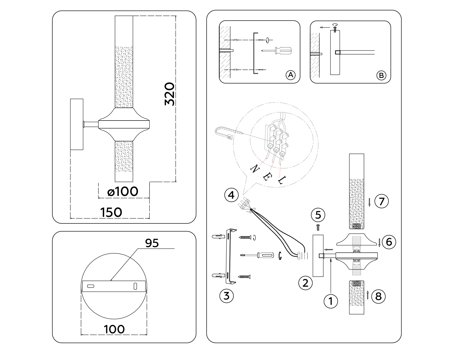 LH55362/2 BS/CL латунь/прозрачный G9/2 max 30W 150*100*320