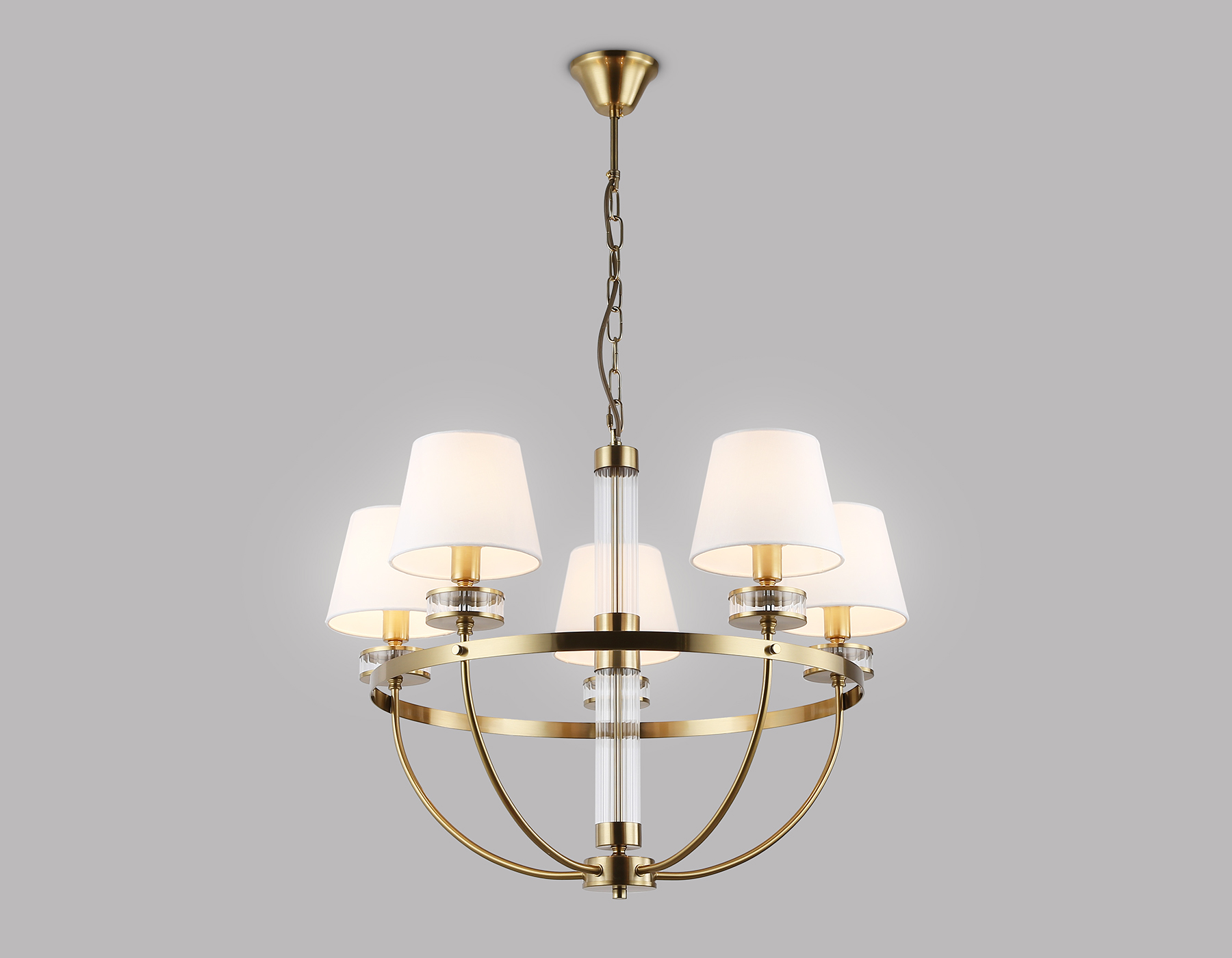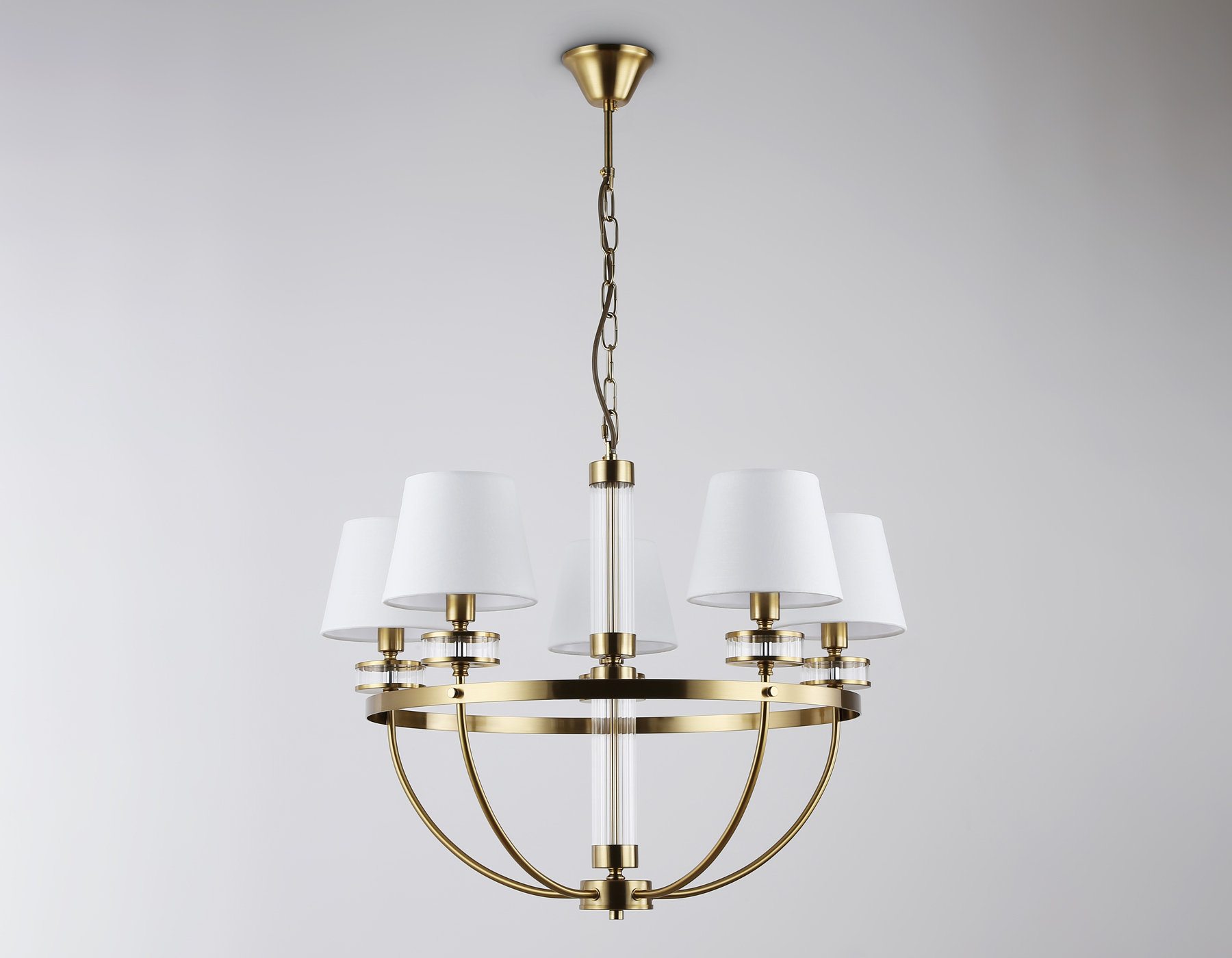 Подвесная люстра с абажурами из коллекции HIGH LIGHT. Модель LH71251 представлена в классическом стиле. Люстра выполнена из тканевых плафонов белого цвета, каркас изготовлен из металла цвета латунь. Для данной модели подойдут лампы с цоколем Е14. Люстра будет прекрасным дополнением в любом помещении.