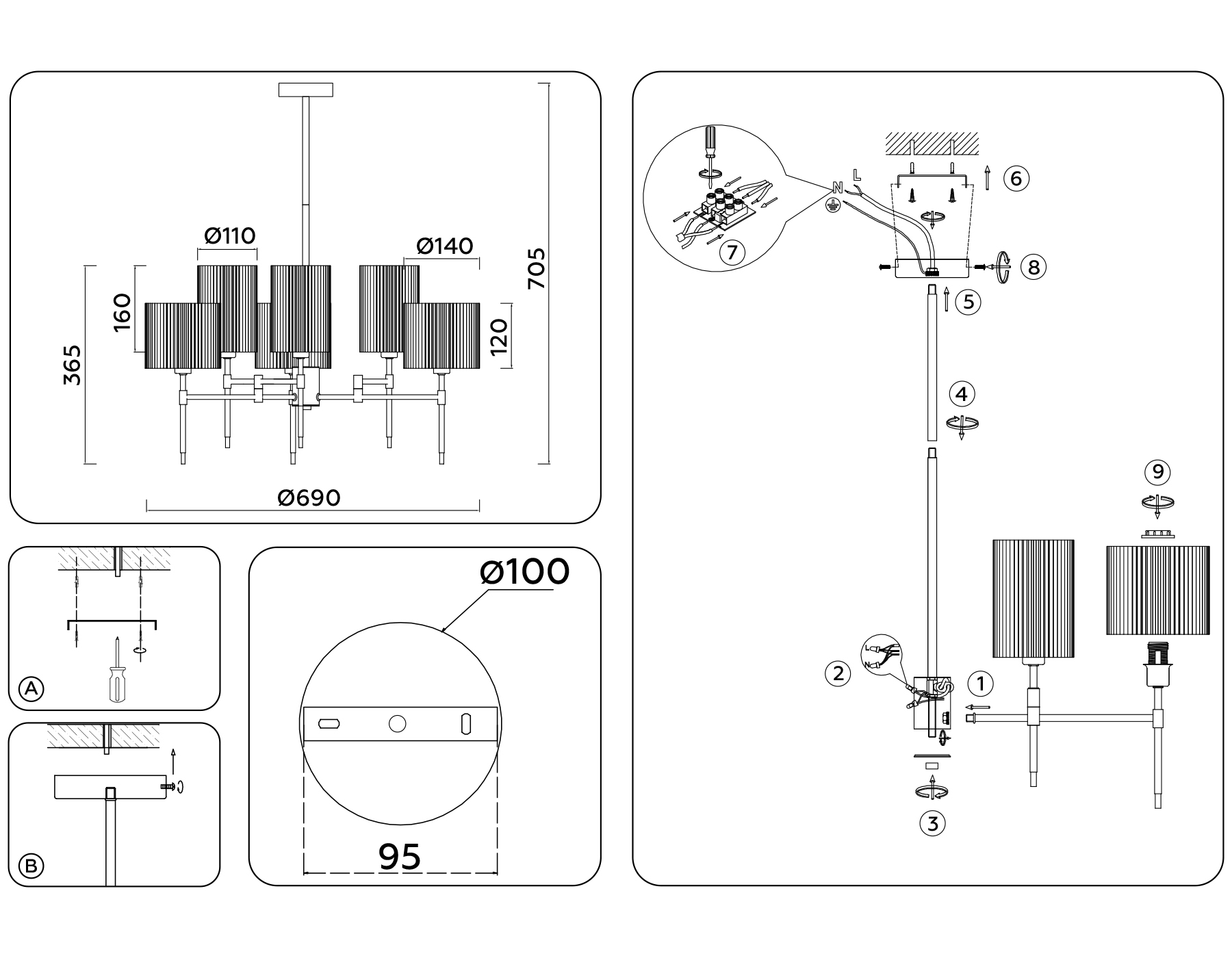 | Высота люстры с троссом, мм |